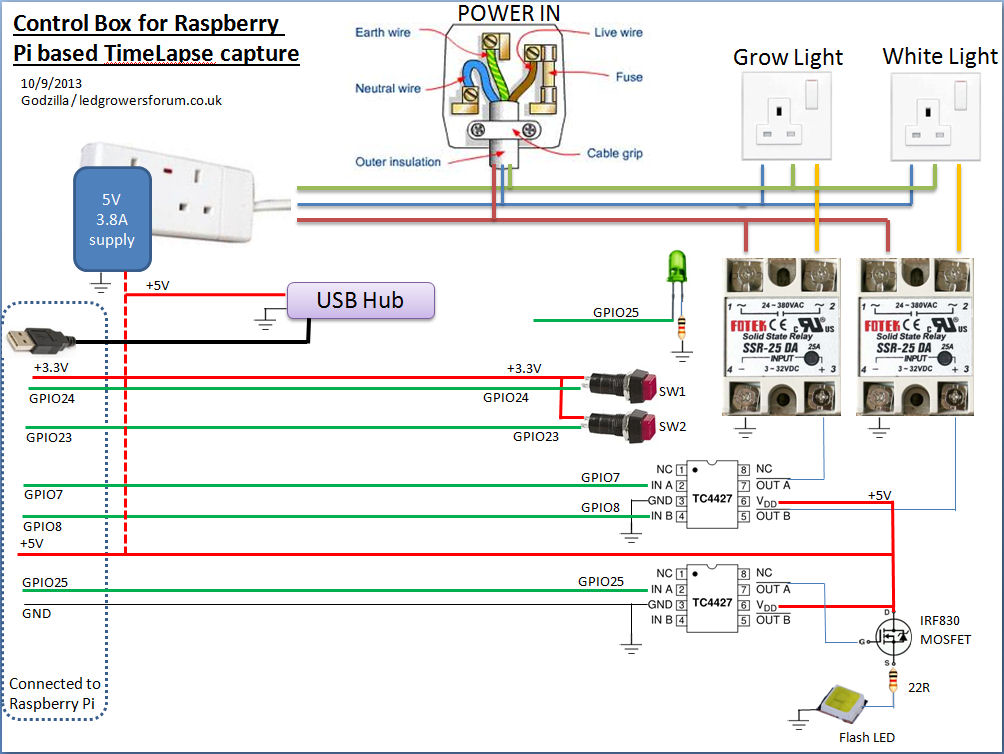 hi folks, managed to find some time to make up a wiring diagram showing the contents of the control box and the connections to the Pi ;