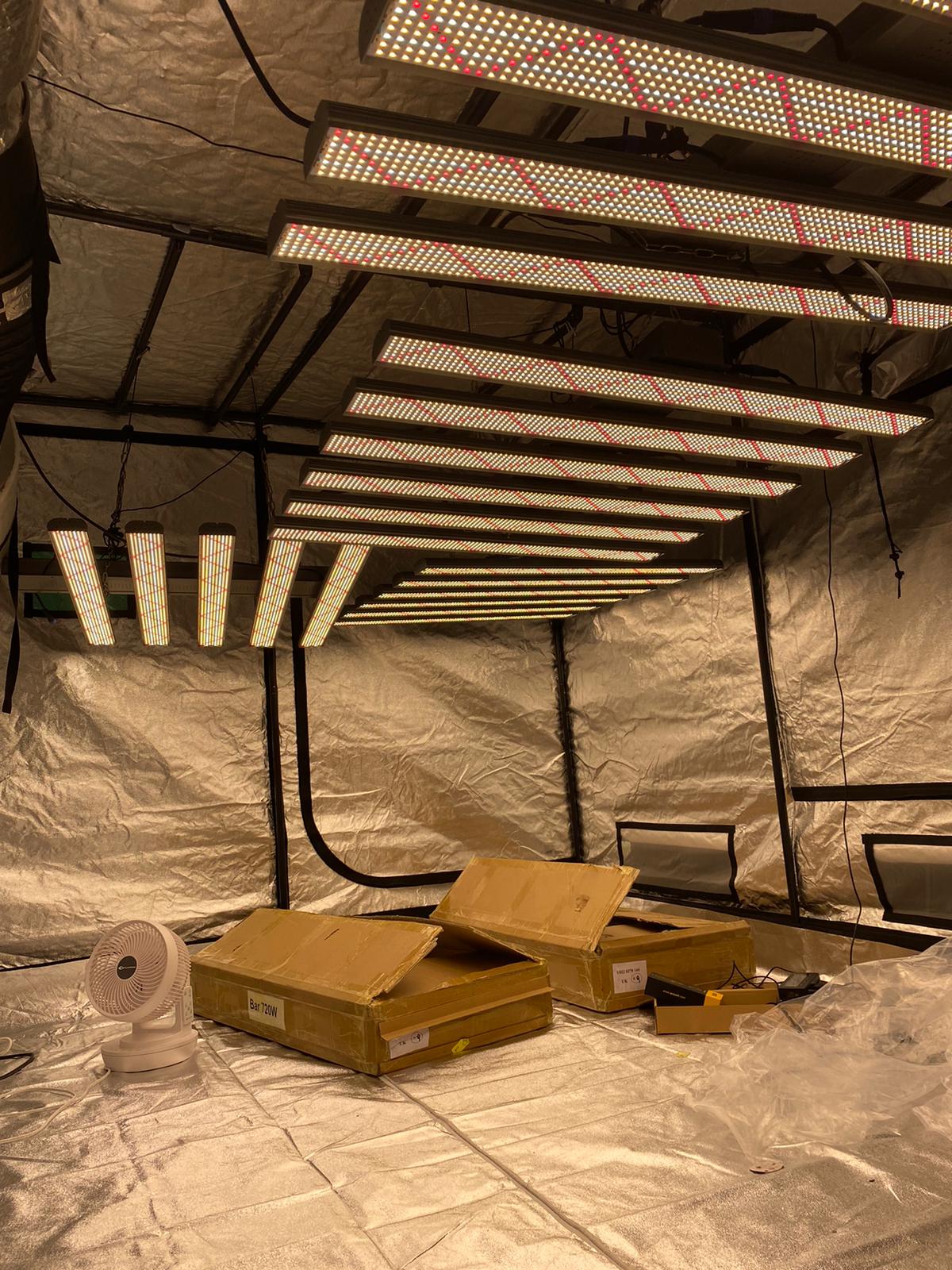 4 x skysaber 720w in 3x2.4m tent.