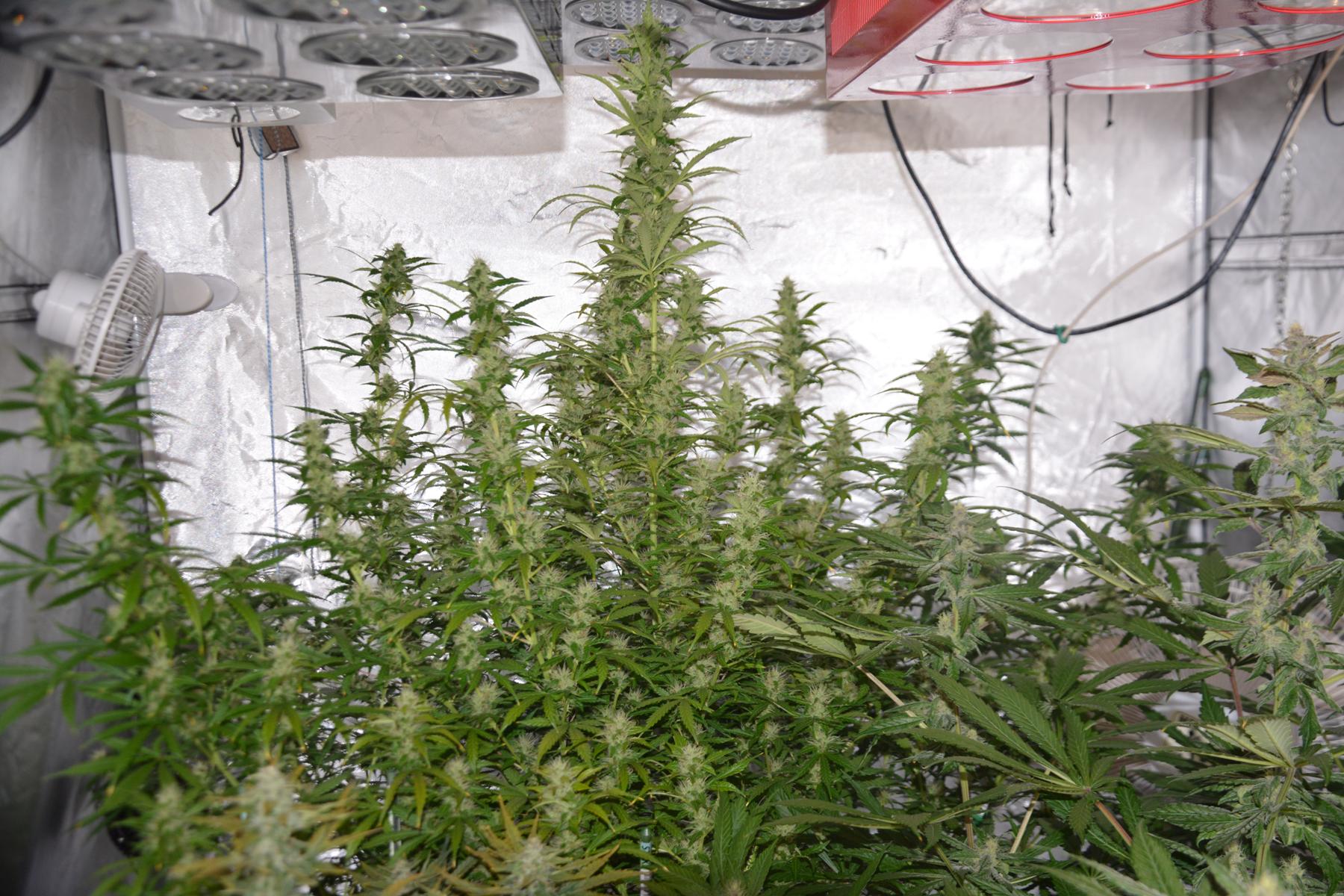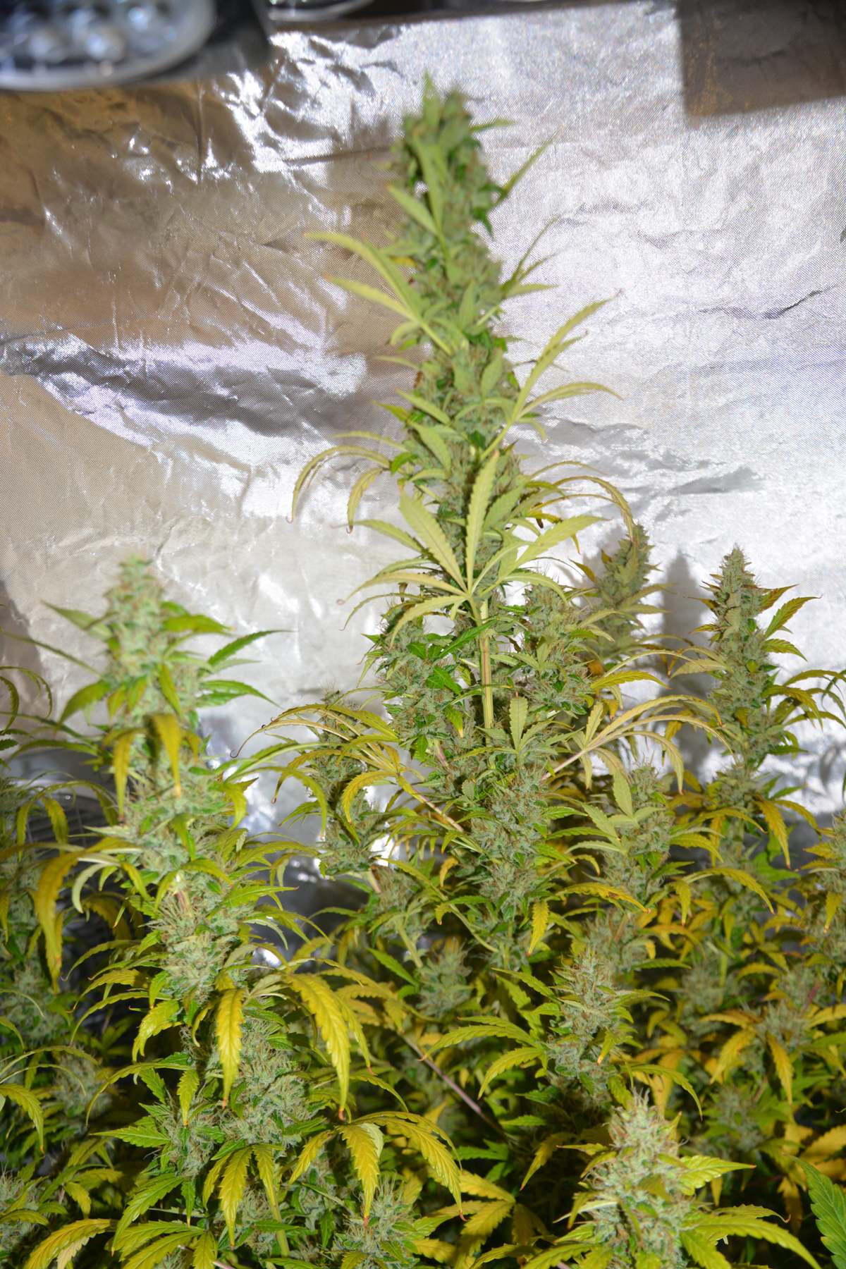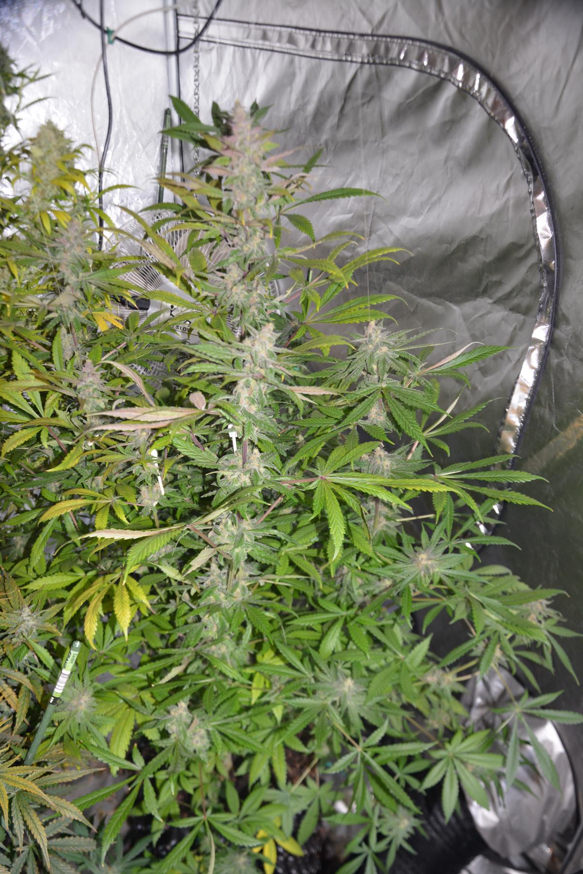 The Cookie is the smallest but most advanced in terms of flowering. She's on an EC 0.9 feed, standing at 80cm high and is 60cm on her sides.....