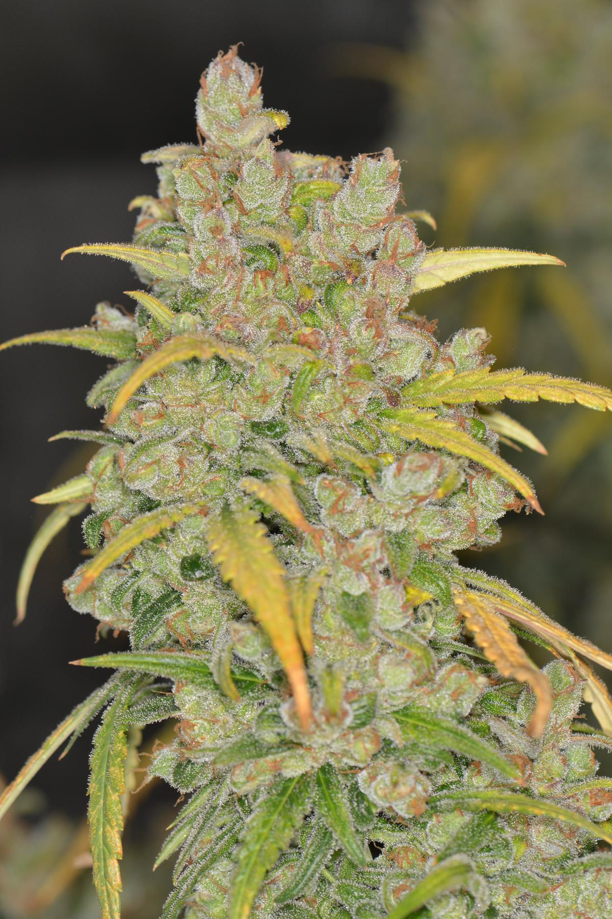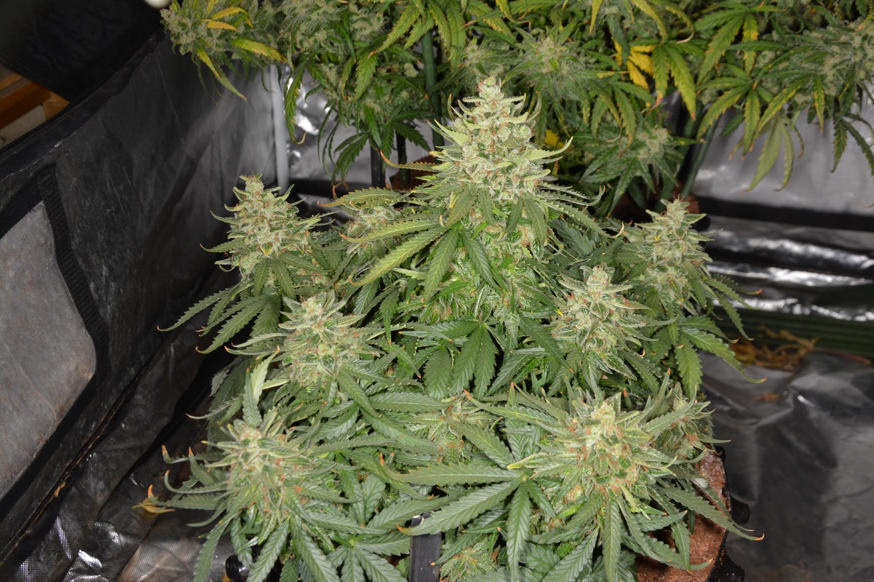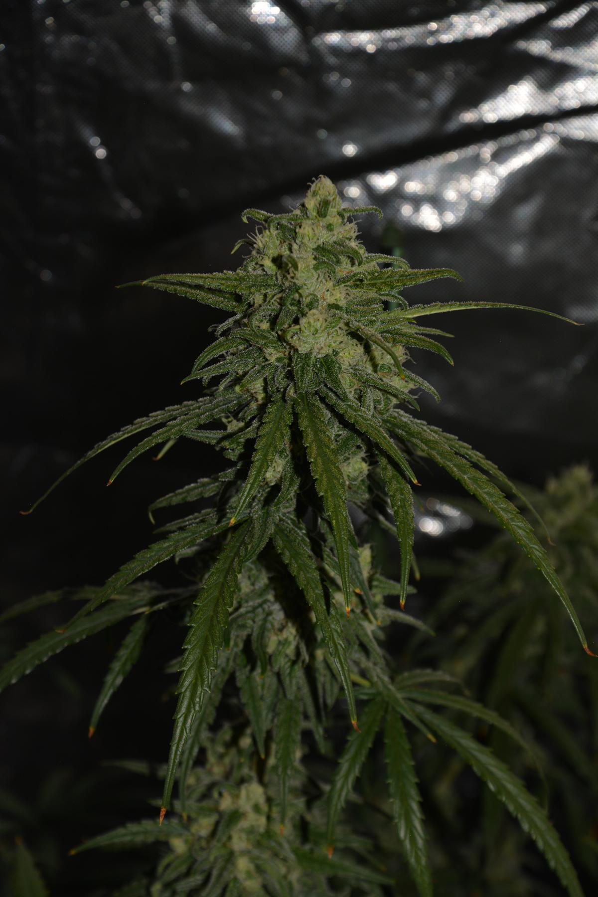 I'll harvest her tomorrow night. I usually take stems off and trim them one by one, but in this case I will trim the plant in her pot and get a few pics. I'm smoking some Colorado Cookie right now (from my last harvest) - it's my favourite, so I'm disappointed I'm not getting a bigger haul.