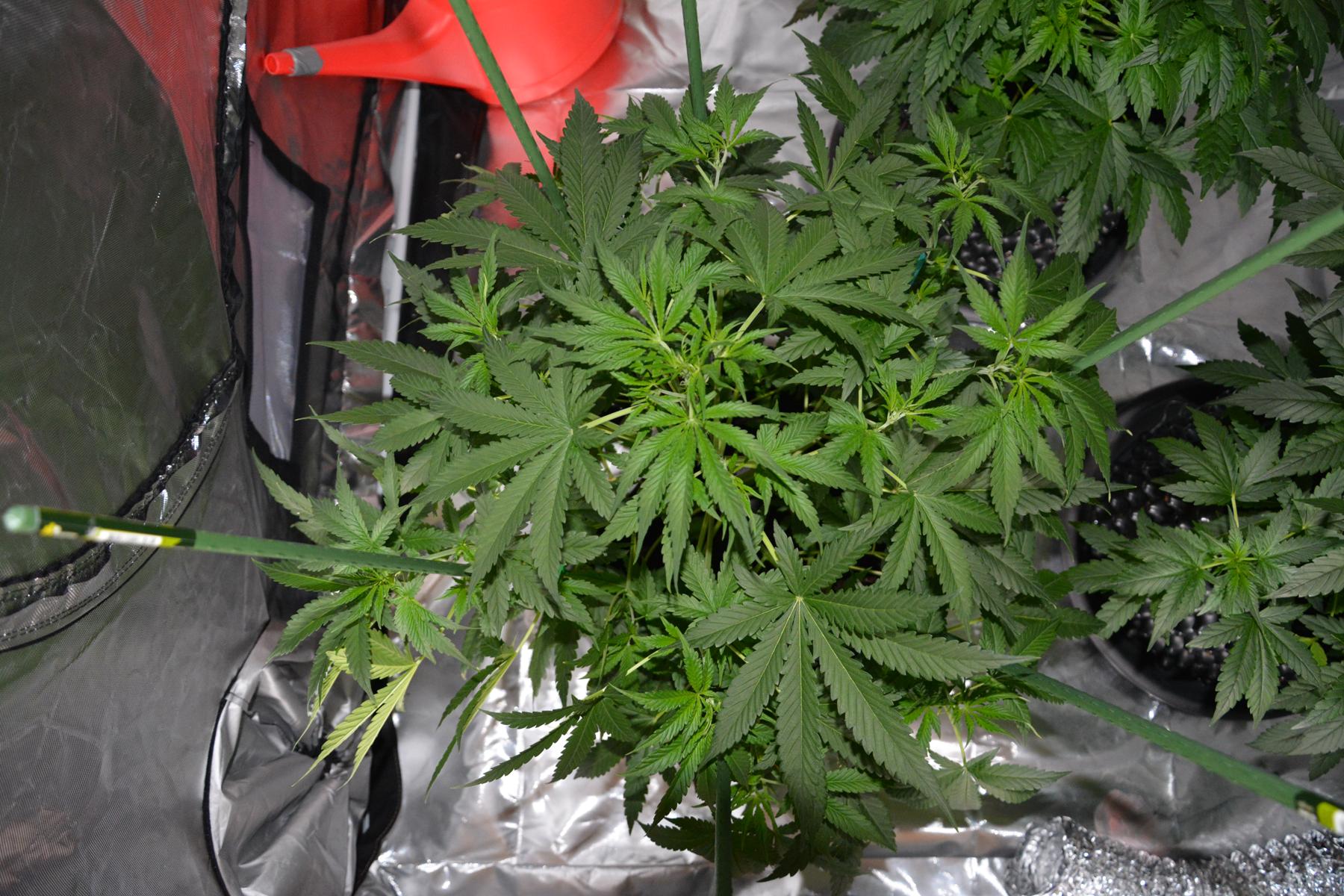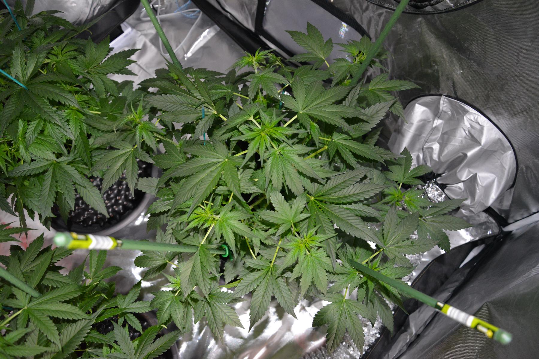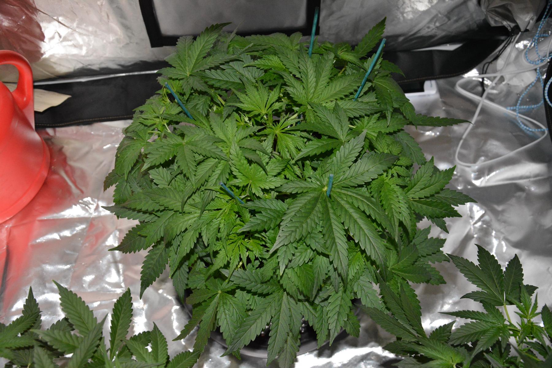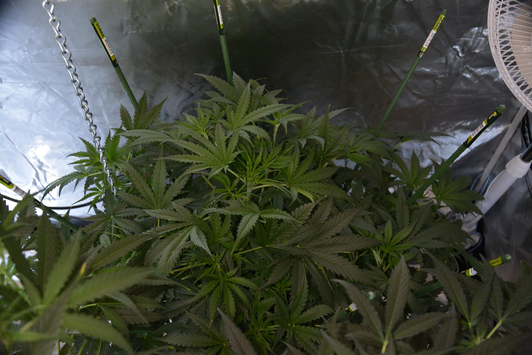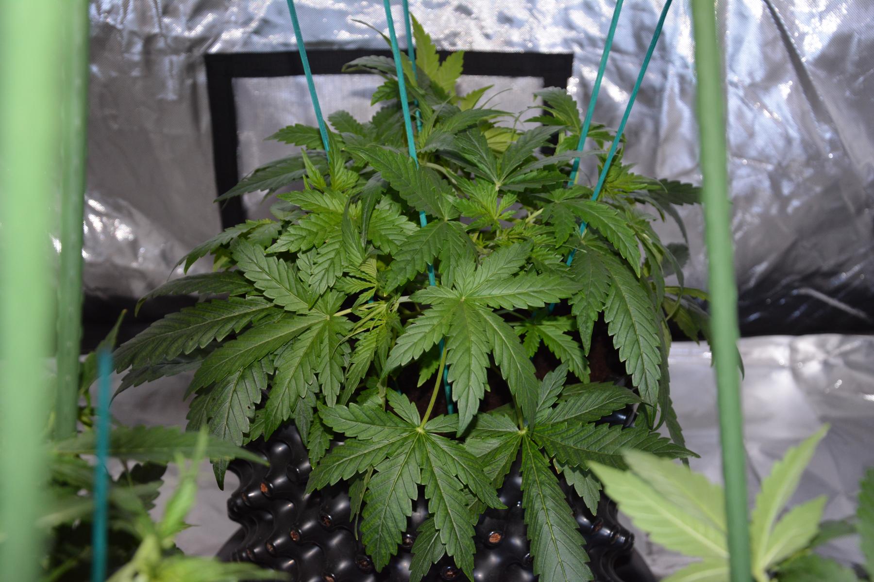 I staked out the smallest plant at the back.... the Critical Jack 2 as she was getting very bushy to the point where new shoots were being obscured by the the sheer bulk of big fan leaves.