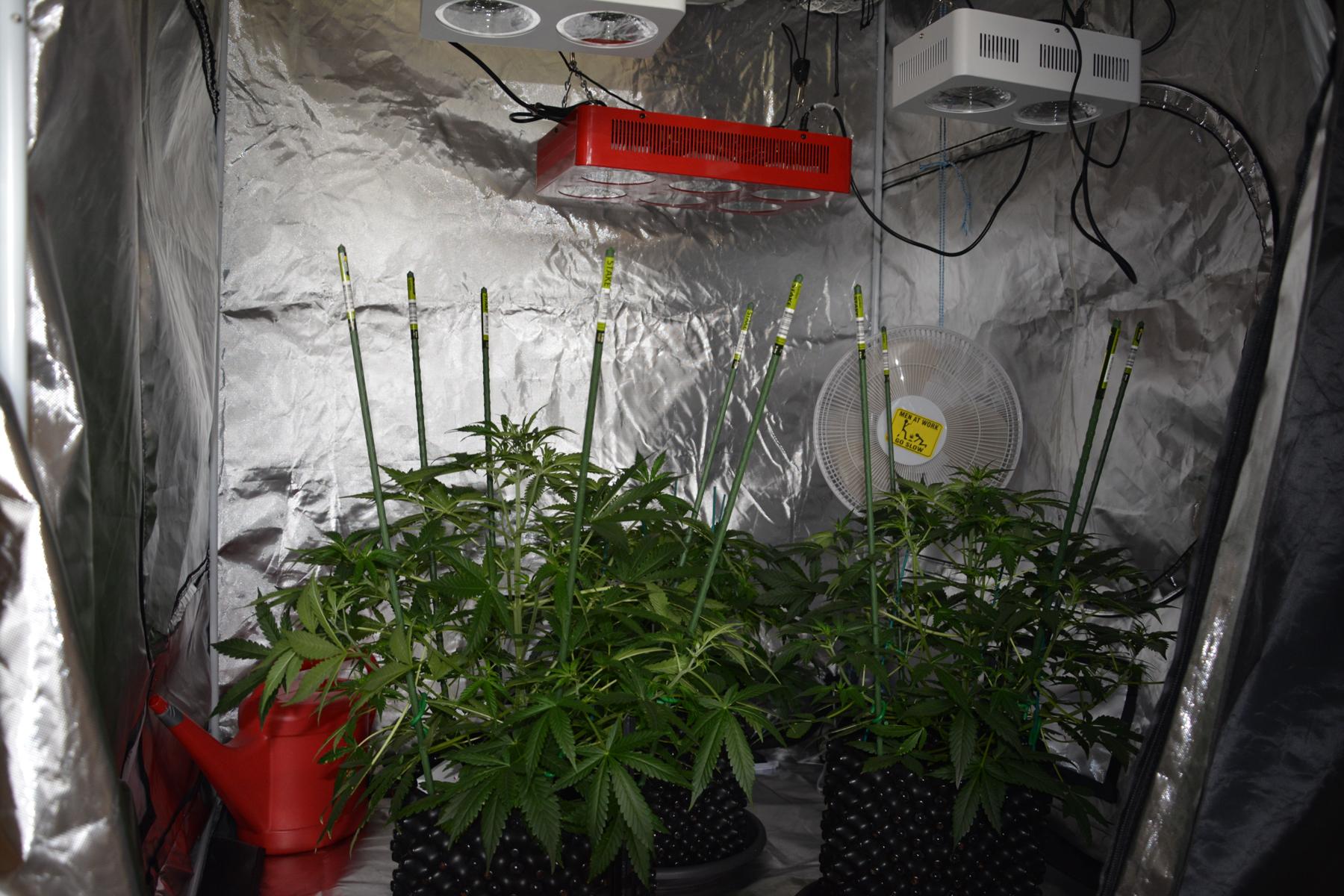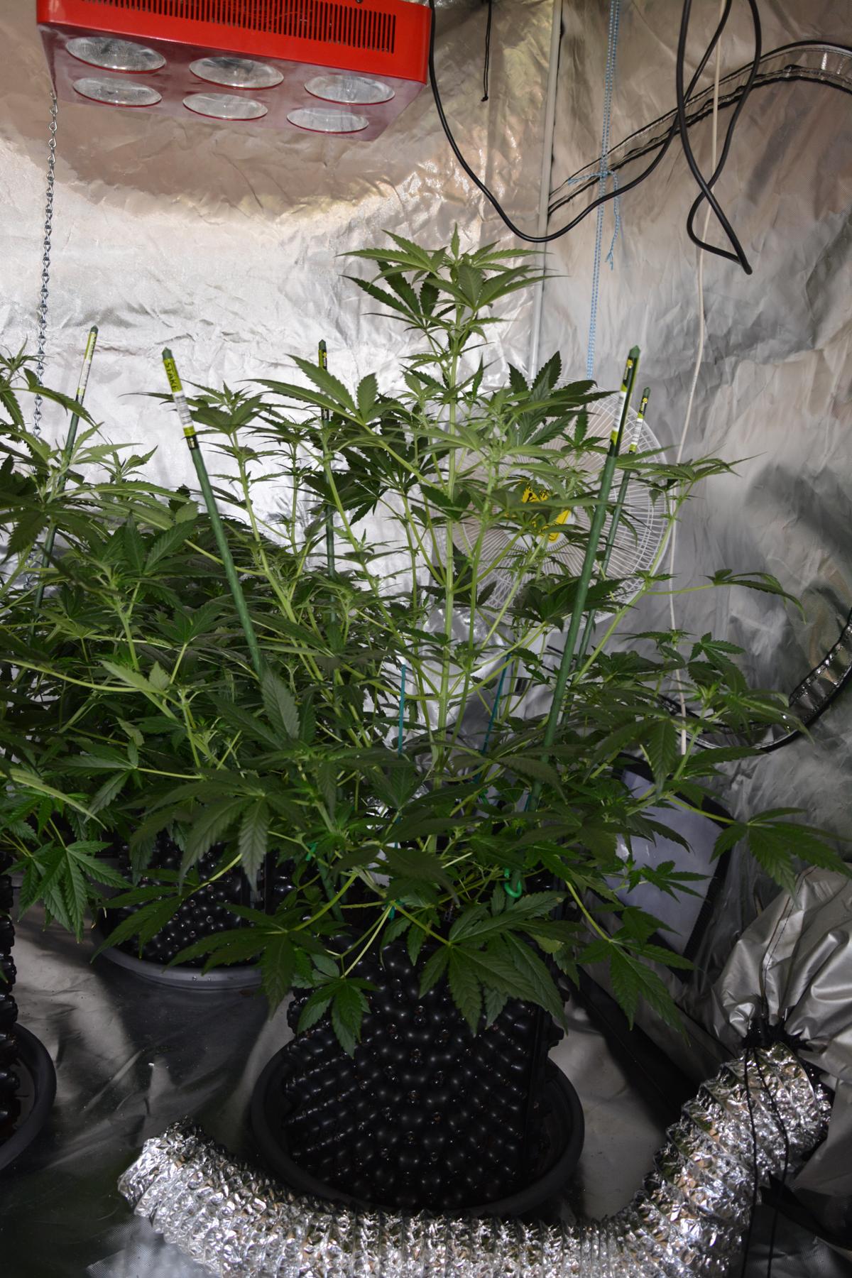 Just a little housekeeping today.... I moved the smallest plant, the Critical Jack Auto no1, under the Helios 6, and put the fully revived Chronic Ryder under a Helios Pro 2. They've always been in 22L airpots, (30cm diameter 35cm high), nutrient EC1.3 and run off EC0.6, pH 5.8, 20/4 lights at 20"