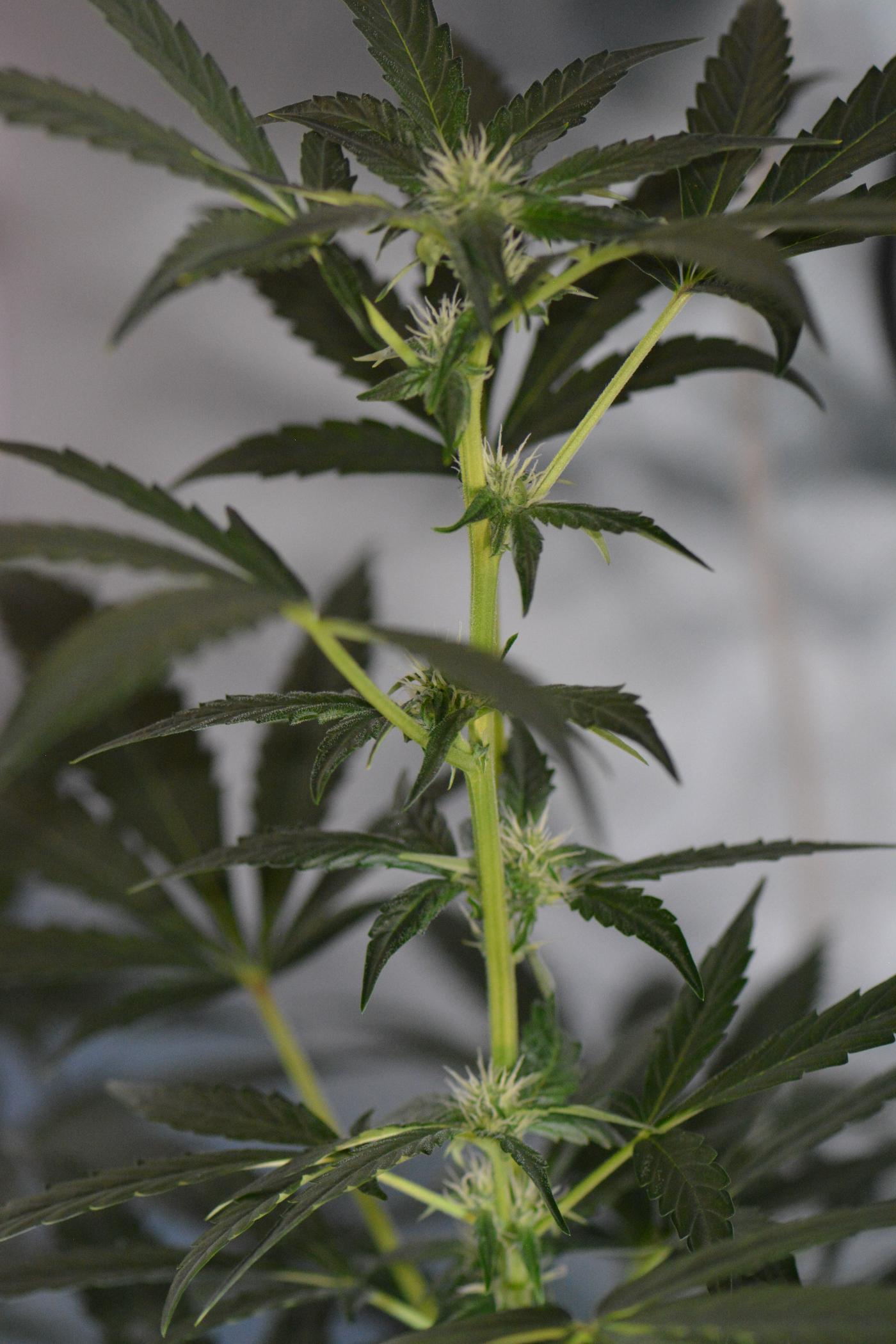 Chronic Ryder is advertised as a 65 day finisher, whereas the Critical Jacks are 70-75 days. As a consequence, Chronic Ryder has the most developed flowers, followed closely by Critical Jack 2. Both have stretched, and are 80cm tall, the Critical Jack 1 is at 50cm but is very bushy and just showed early flowers and is beginning to stretch.