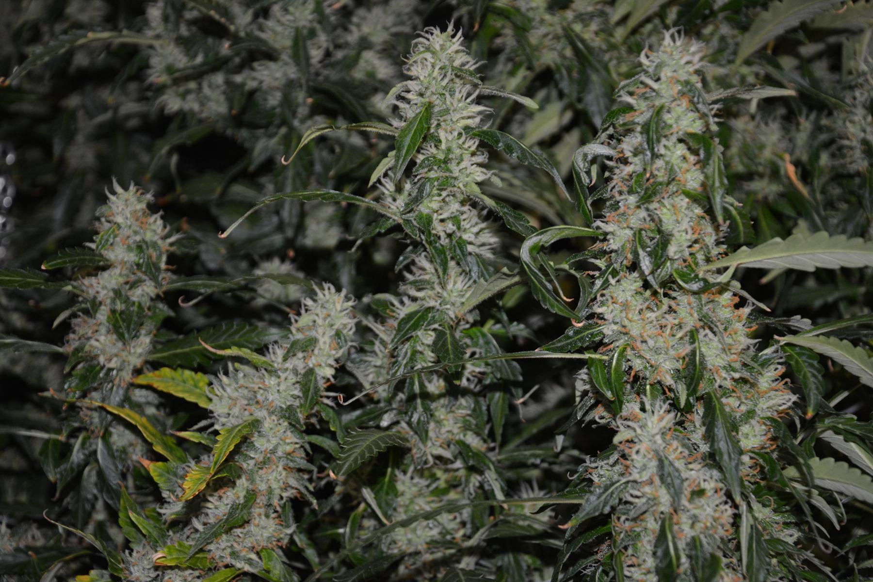 On both, the buds are plentiful, big and covered in trichomes. I'm glad I got that netting on a few weeks back, they are all leaning over from the sheer weight of bud. :grin: