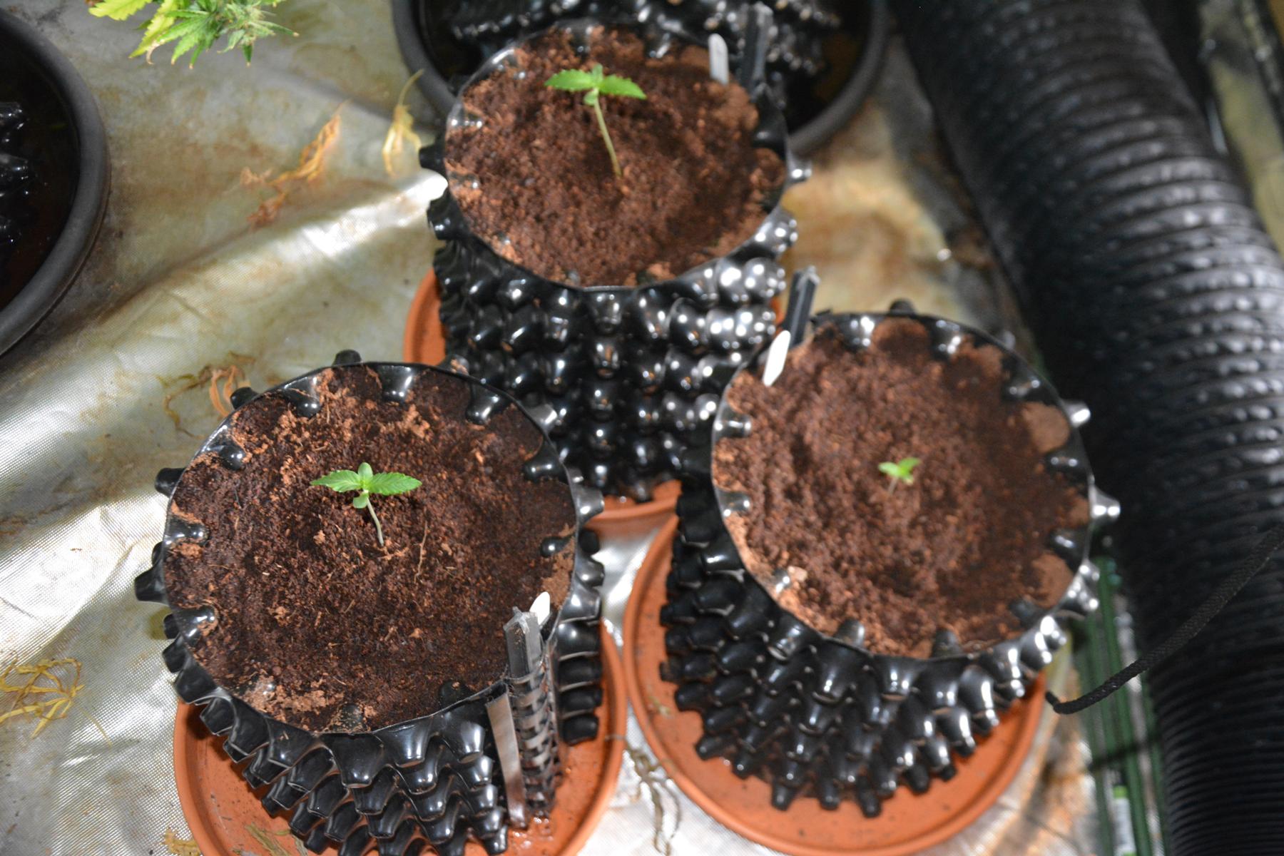 I planted one of each in separate 5L airpots, with 100% Canna Coco Professional Plus soaked in an EC 0.7 nutrient solution (made up of EC 0.5 Base nutrient with 0.3ml/L Roots Excellurator and 0.1ml/L Nitrogen). I don't pre soak seeds, or leave them in wet tissue paper etc.... I just plant direct, cover with clingfilm and dark cardboard, and it works 100% of the time.