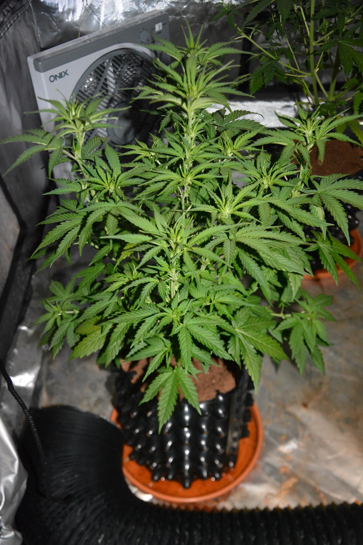 The Lime is just huge already at just over 70cm, but the Cookie is cooking nicely. The Blackberry is not far behind them, but she's obviously gonna be a smaller plant. All 3 have shown signs of flowering, so I decided last night to repot them from their 5L airpots into 20L ones.... something I've done a few times now in an effort to boost growth in the mid stage of the grow.