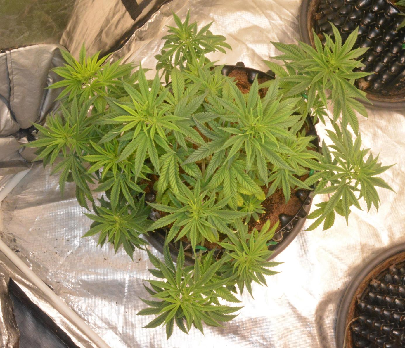 Here she is from above. You can see I topped the main stem on day 20, and I'll top the longest side branches in a couple of days.
