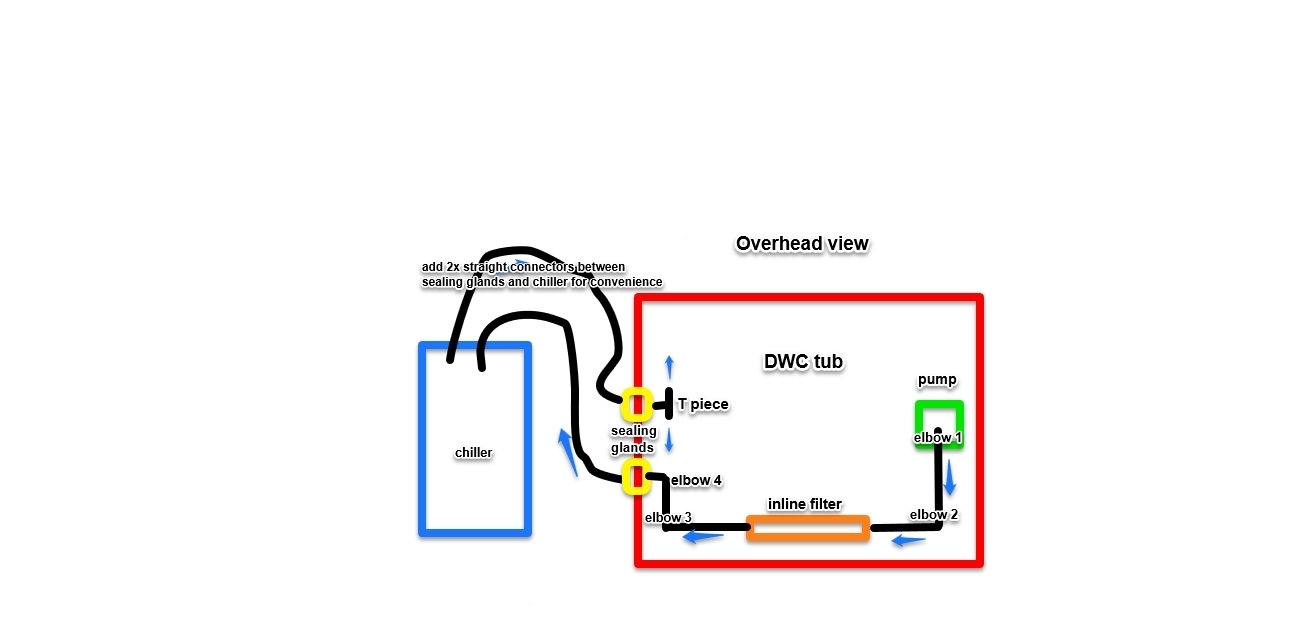 I put a couple of straight connectors on the ends and that will make it easier to attach the cooler to the DWC after threading the pipes out of the grow cabinet... I'm placing the chiller outside the cupboard, so that it doesn't add to the heat inside.