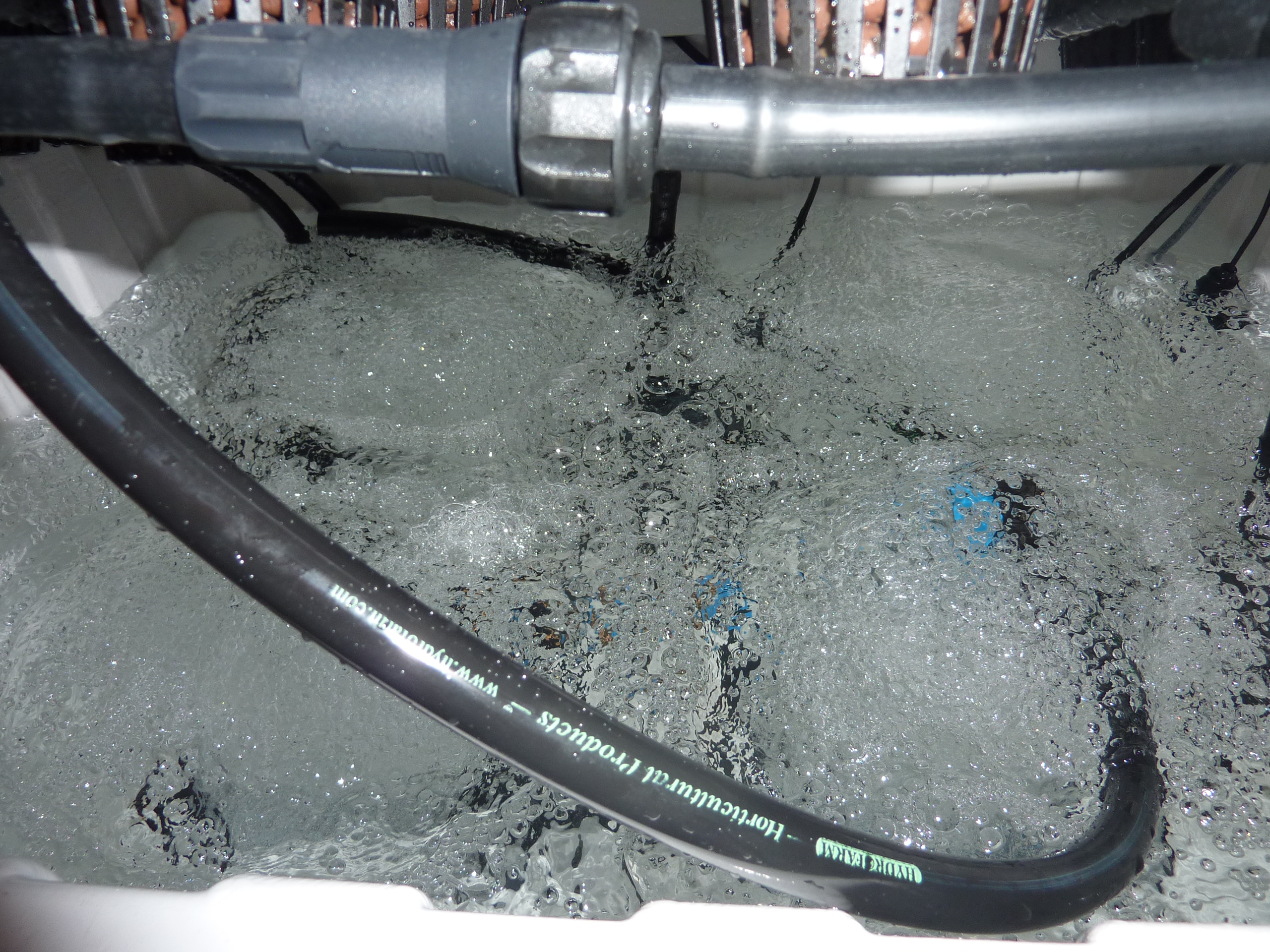 Here's a shot inside the DWC with the 2x Hailea 60L/min air pumps and 4 Aqua Angel air stones in action...