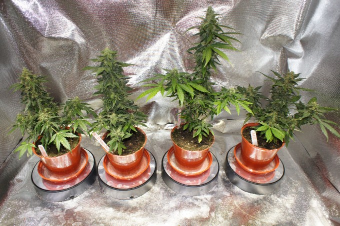 Plants rotated every day 180 degree's so a full rotation every 2 days. Showing very good benefit to the grow so far. With much more fuller bud sites all round the plant, rather than just one side !!