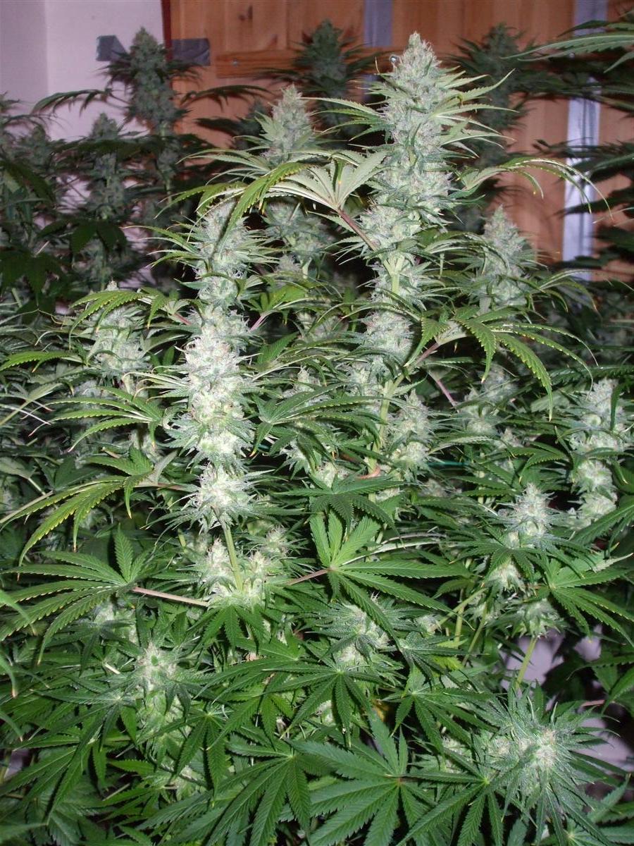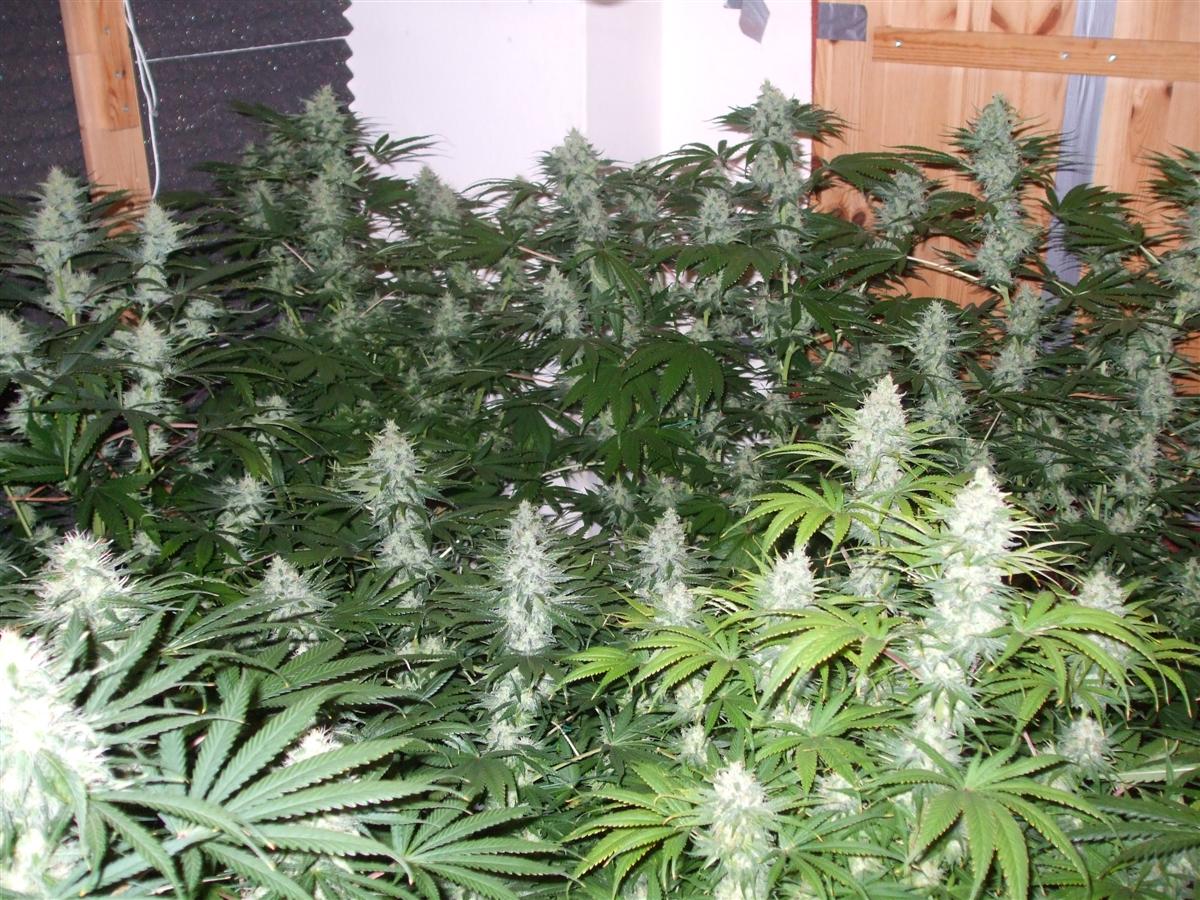 under 60cm plant diameter, and "lollypopped" below, with stronger, longer lower bows due to topping main stem once @5wks, 1 week post sexing.