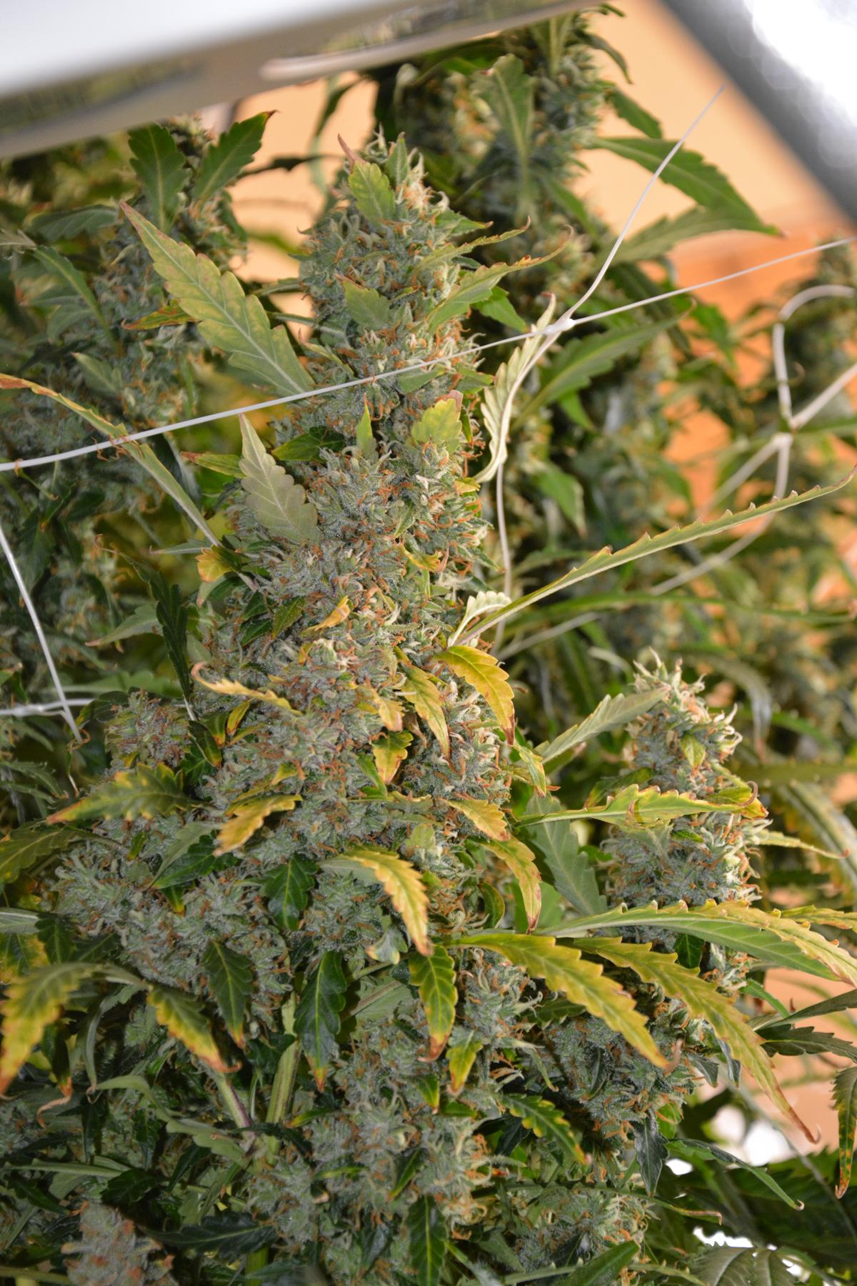 Her many colas are glittering away with trichomes.....