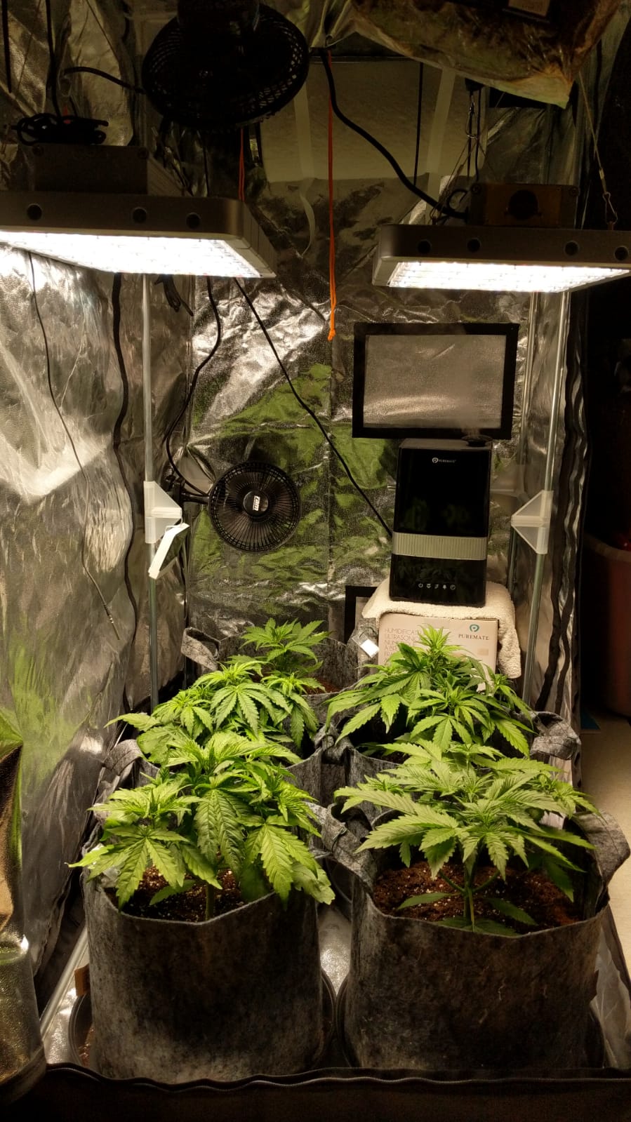 In addition to this i put the second clip fan on the highest setting indirectly gently moving the plants so any critters can’t take refuge on our foliage. Each time i check them i give the pots a little shake and see if anything is flying around etc… abit OCD i know. However in the past week they have grown tremendously, the tallest is now 18.5 inches and the smallest is 14inches, so i don’t think that the small clip fan will suffice for much longer. Next week i will be installing a 16” oscillating fan into the tent and removing the small clip fan to keep up with the girls.