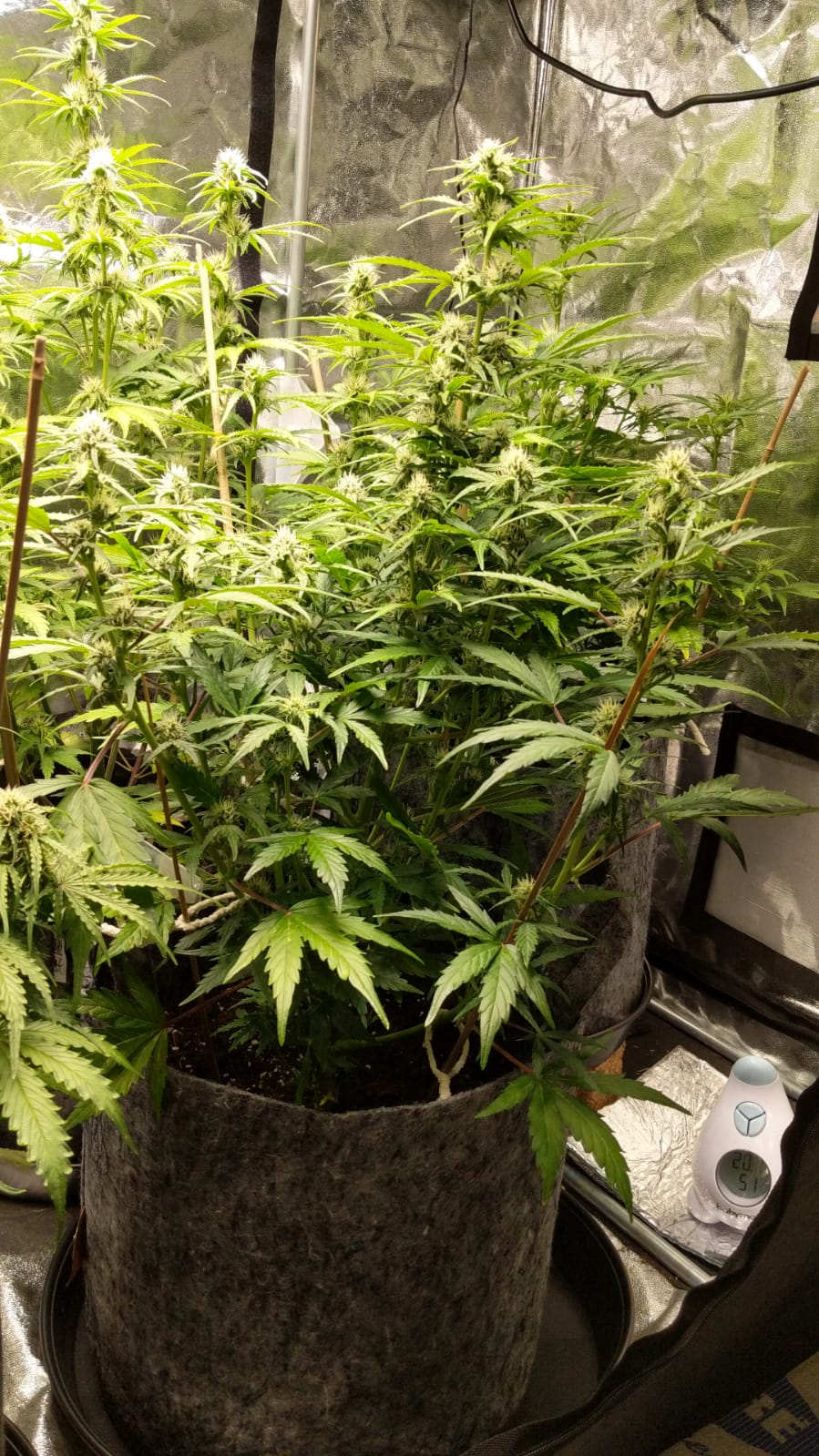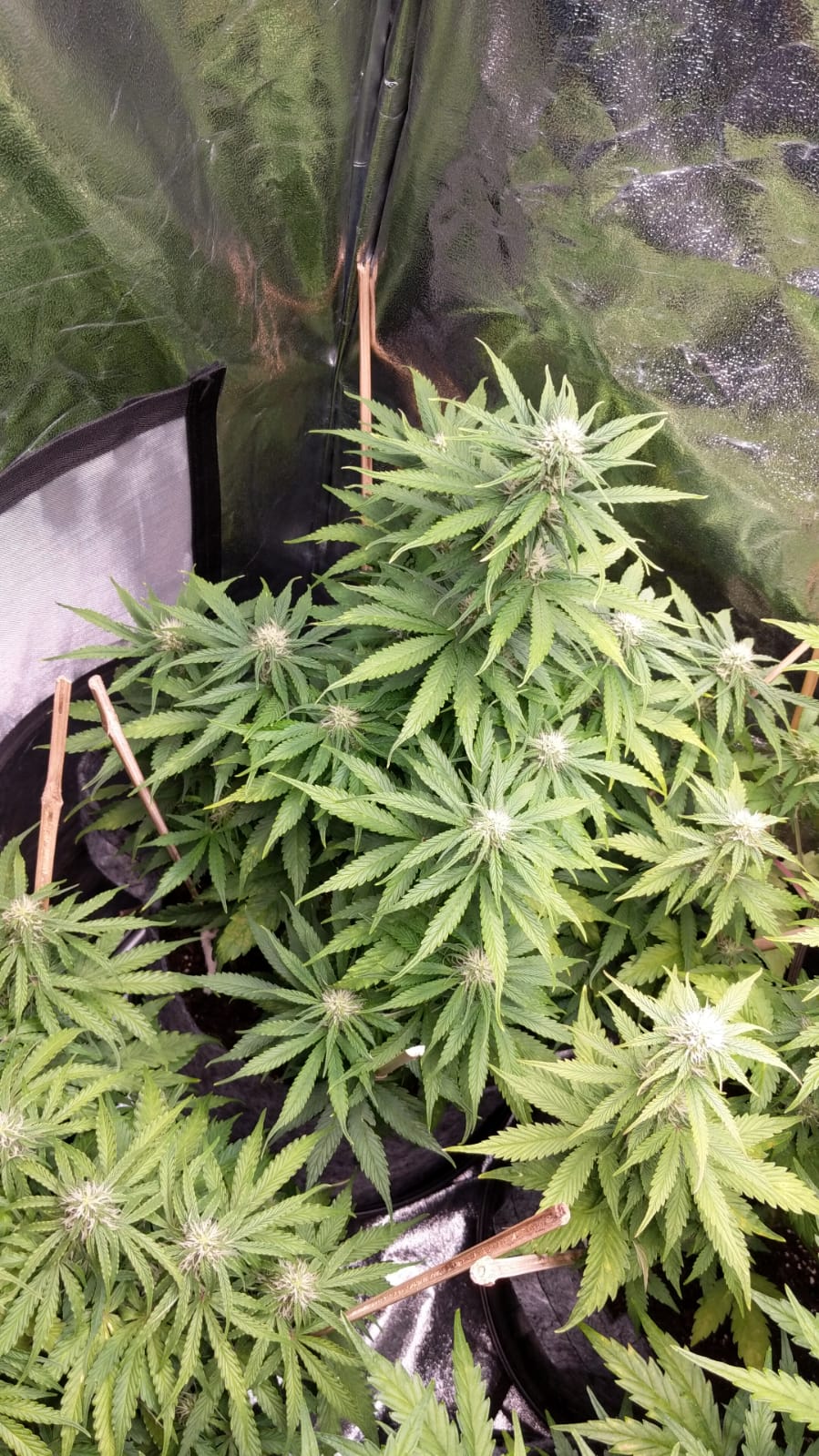 When flowering started i capped the RH at 48/55% which i hope is ok for the flowering phase. The temperature is stable between 23.5 and 27 degrees. I am not lowering the temp during the dark period of 4 hours because i don’t think it is worth it with autos. I would rather just leave them in a stable environment and focus energy on maintaining that.