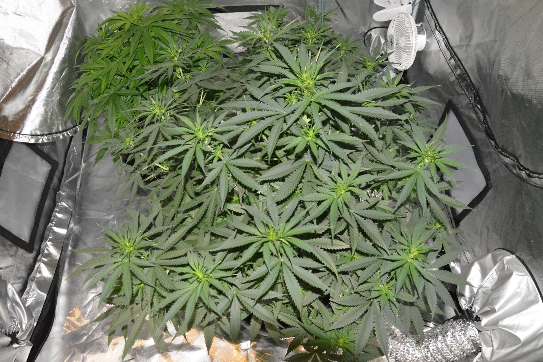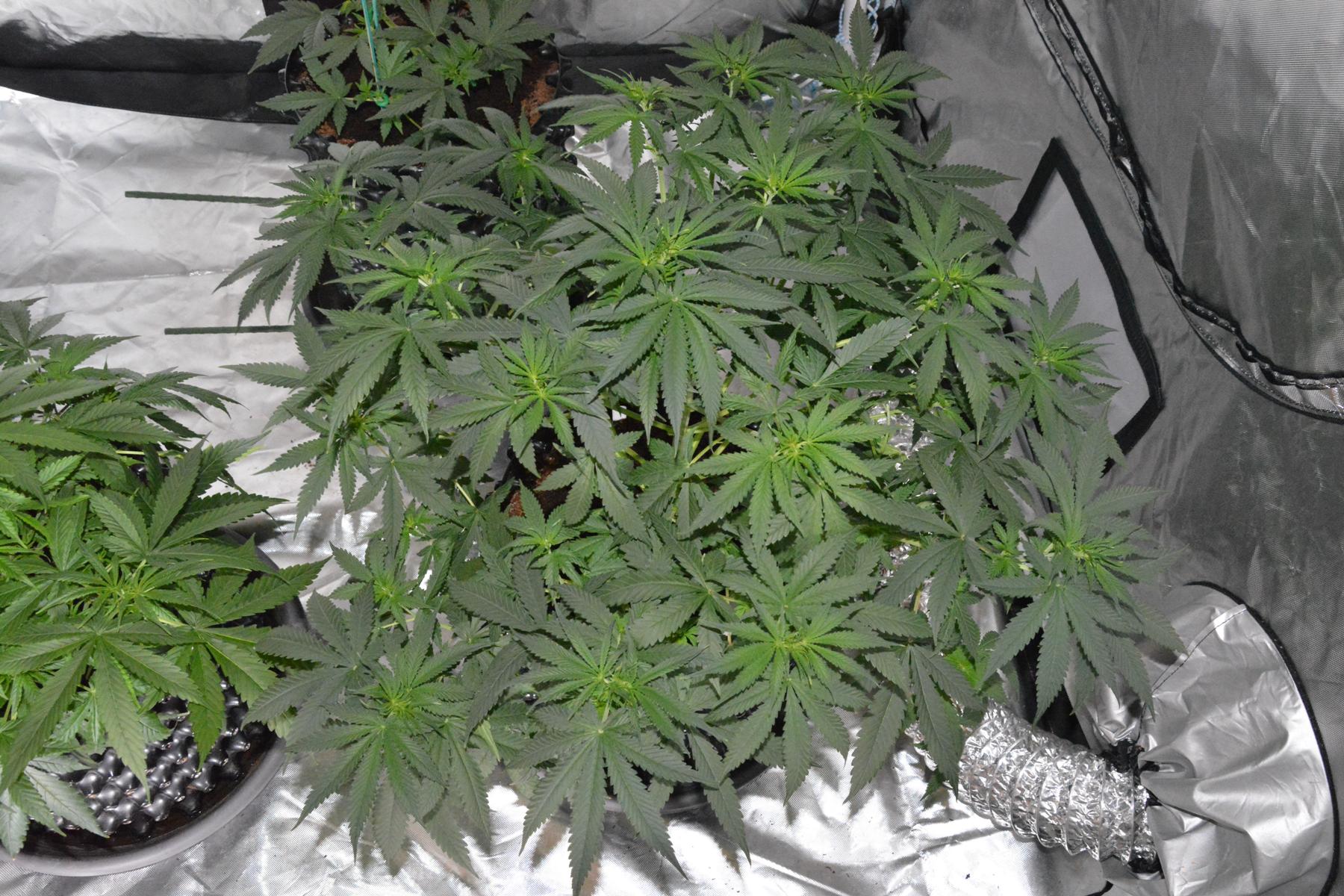 I'm sure she'll benefit from this in the long run. I plan to top each main stem and once they get established, trim away everything underneath and train a canopy..... a kind of mainlining / scrog hybrid