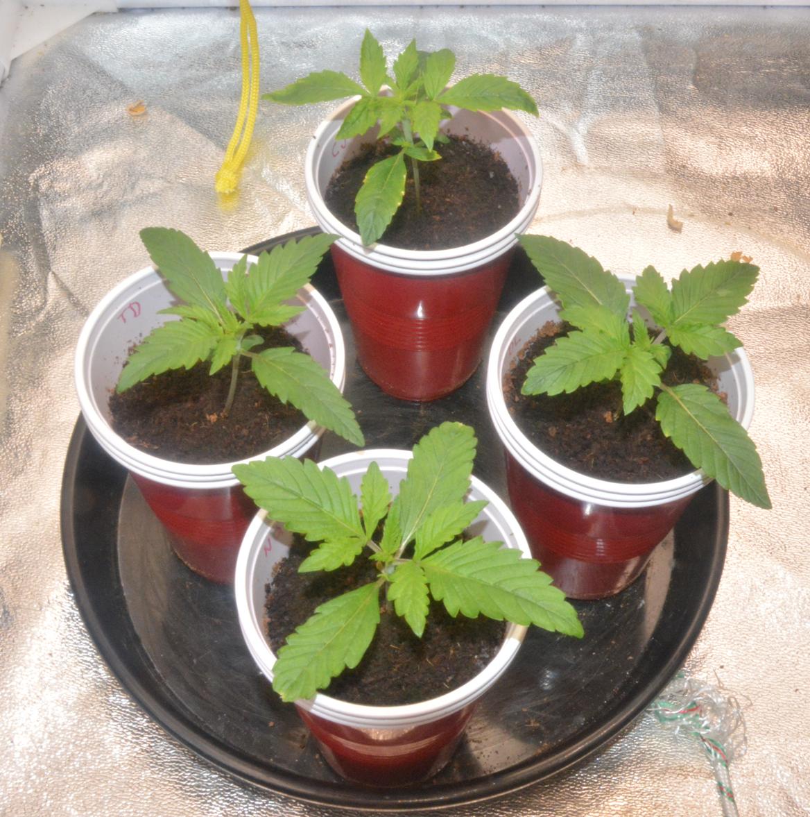 I planted each seed in a Solo cup full of Coco soaked in EC 0.7 House and Garden nutrient, covered them in cling film (for humidity) and left them in the tent (to keep warm) with some cardboard on top (to keep the light out).