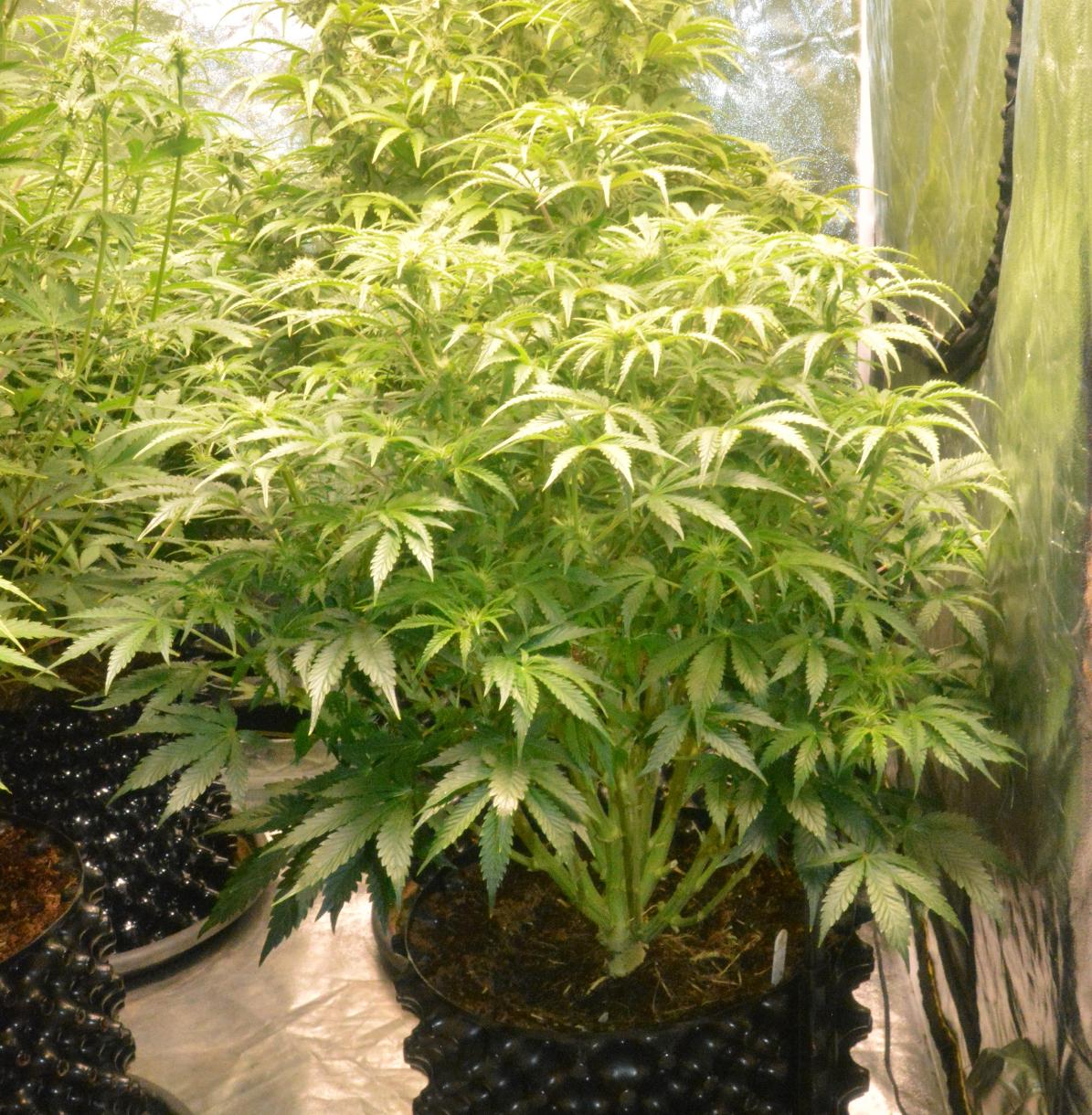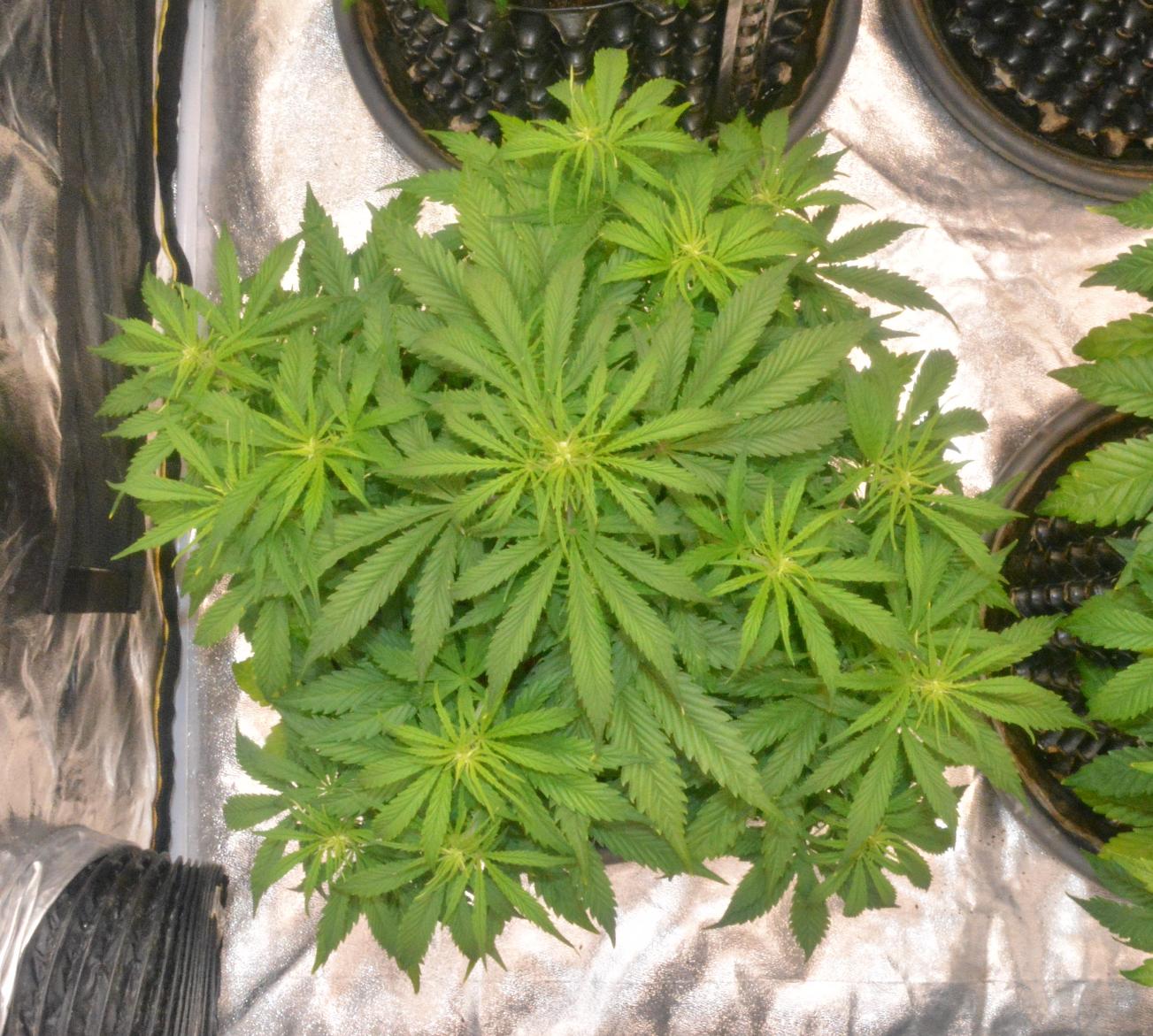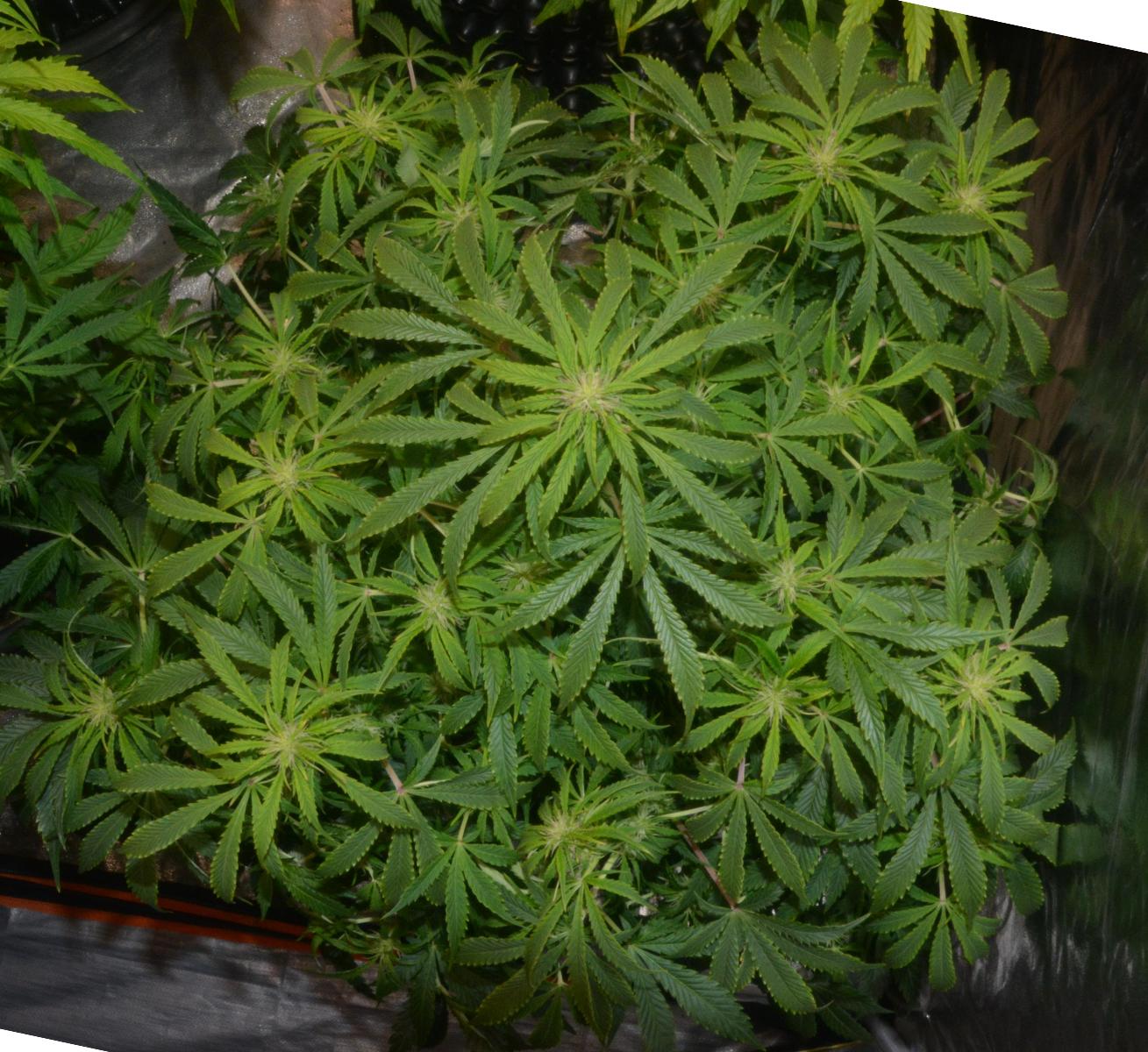 The Night Queen was huge, and the Cinderella Jack and Think Different were not far behind. They were all very leafy, so I thought it was time to consider removing some of the larger fan leaves that were preventing light getting to the new shoots underneath. Some of the lower fans on the Night Queen were massive... 6 inches long, 2 inches wide!