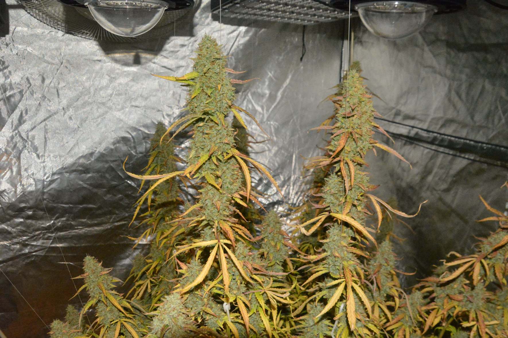 ....and by day 74 she was hitting the lights, so I shoved a load of long stakes in and supercropped the fuck out of all those tall stems.
