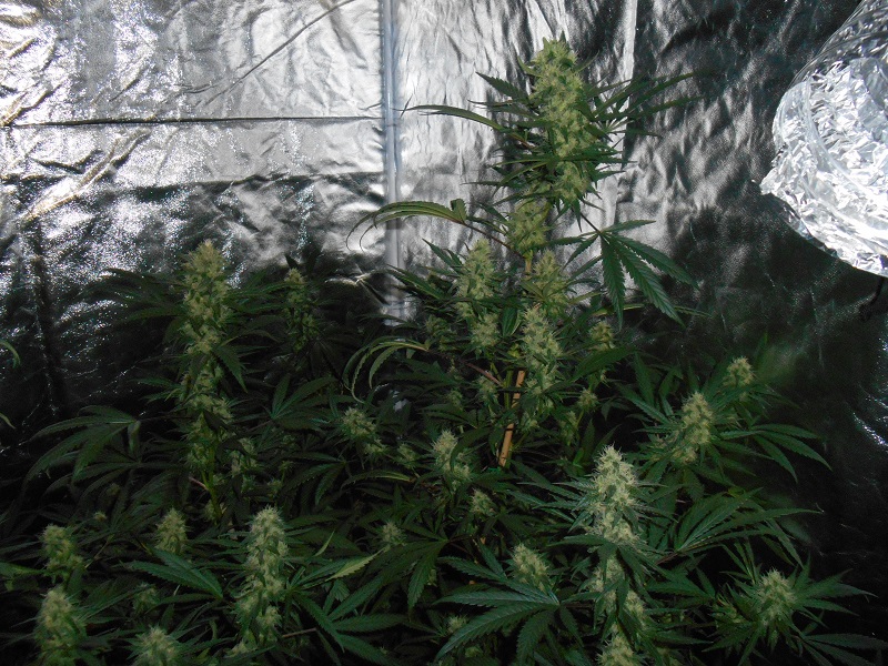 according to henk van dalen tee...........for normal development and to be able to change air quality regularly enough without dropping temps, you nedd a min of 1 meter square per plant if medium sized like a fem reg. 1 max 2 plants in a 1.5m square tent is max. other wise "yield" will be comparative to 4 in same space. Ergonomic impact of proximity. The plants know they are close up etc.......respiration product spewing onto each other is blamed. Ive tried 8 and 6 and 4 and even 15 in a 1.5 yield only varied by 25% top and toe.