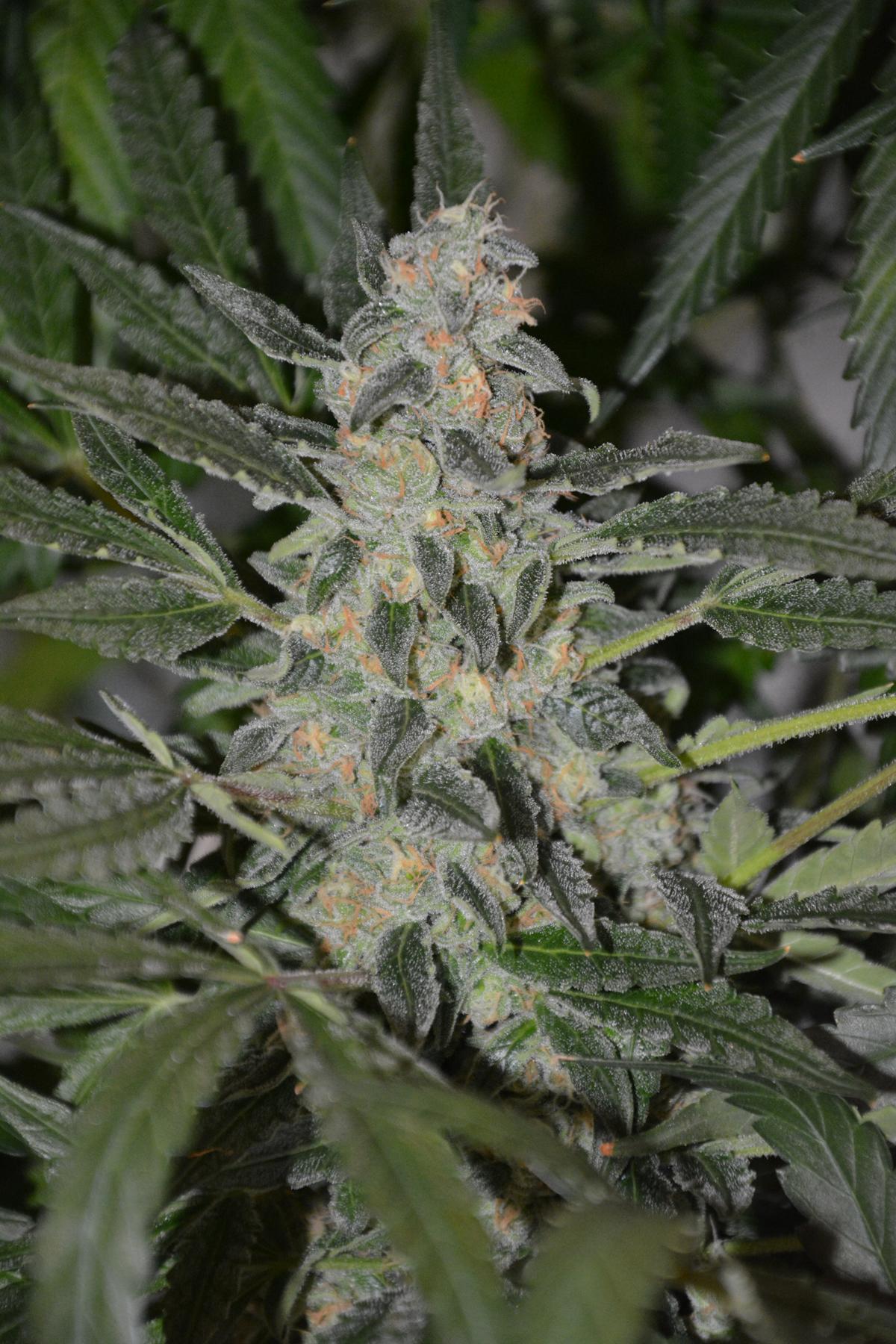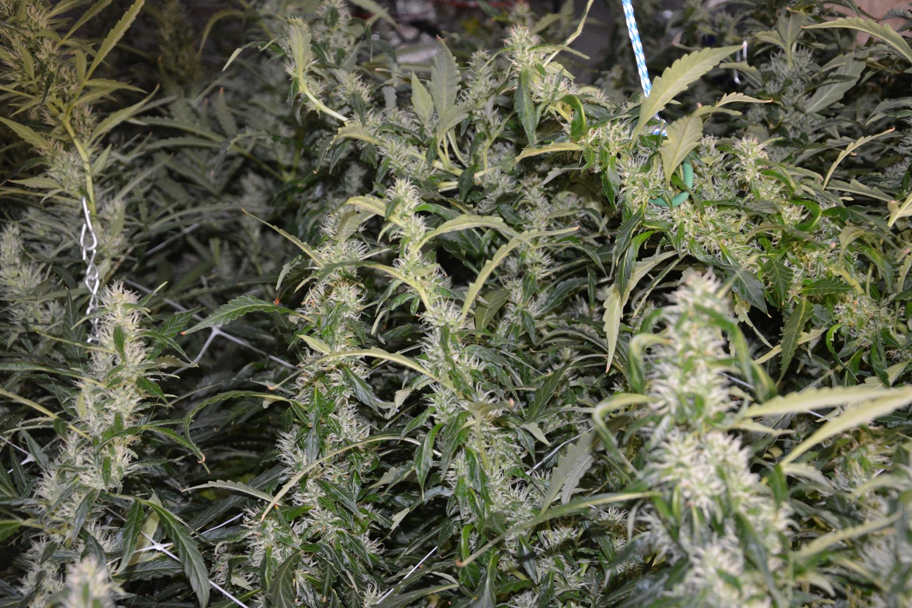 Here's a shot of AU1 on day 68, showing signs of heat stress but some nice colas forming, and some recent supercropping.....