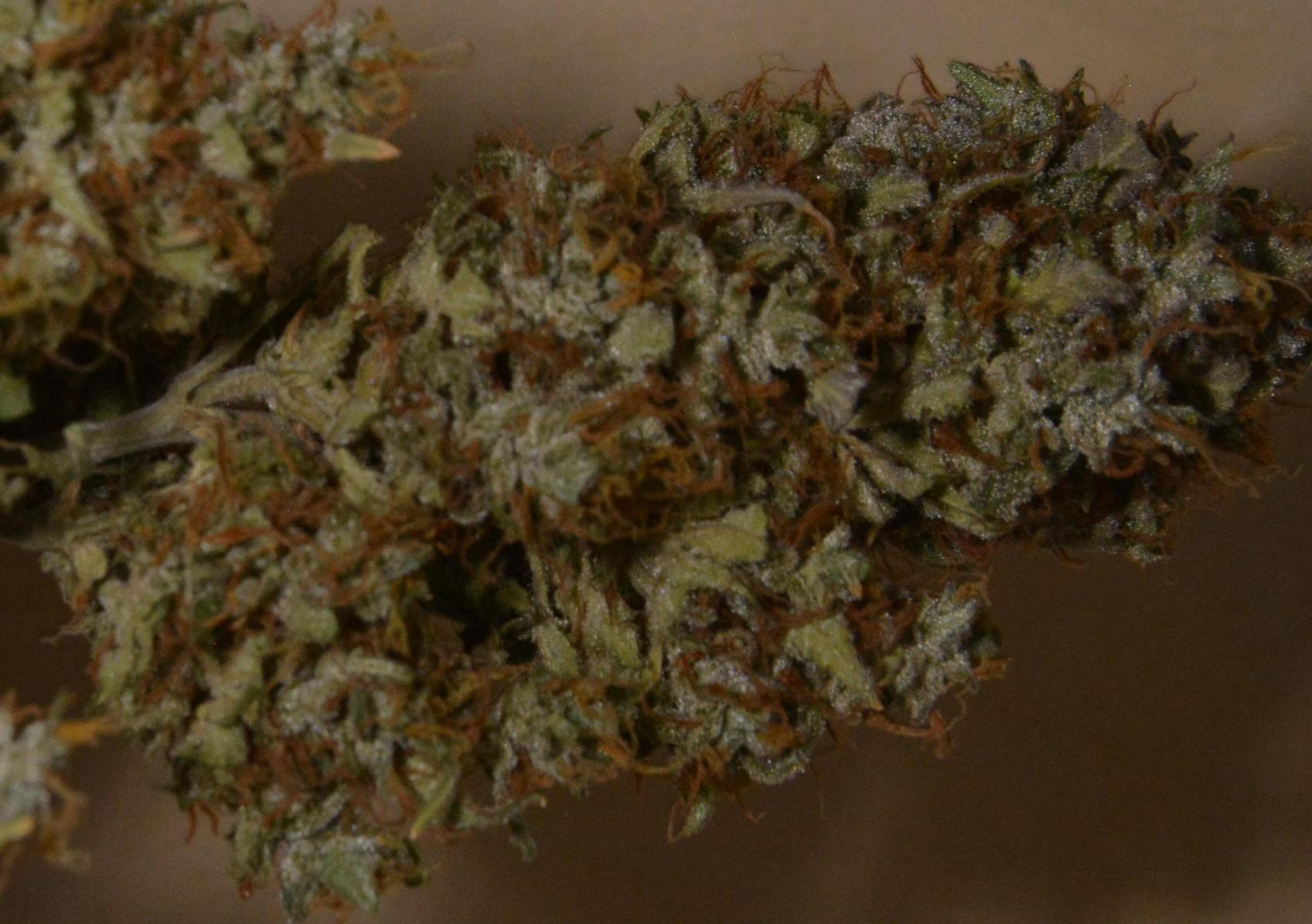I started taking down Cream Mandarine on Sunday having given her a 5 day flush. I also had the opportunity to switch off the lights for a day before cropping so I could get her to squeeze a few more trichs out. She was surprisingly big and had masses of sticky solid bud on her. Here's a shot of some 2 day dried Cream Mandarine.....