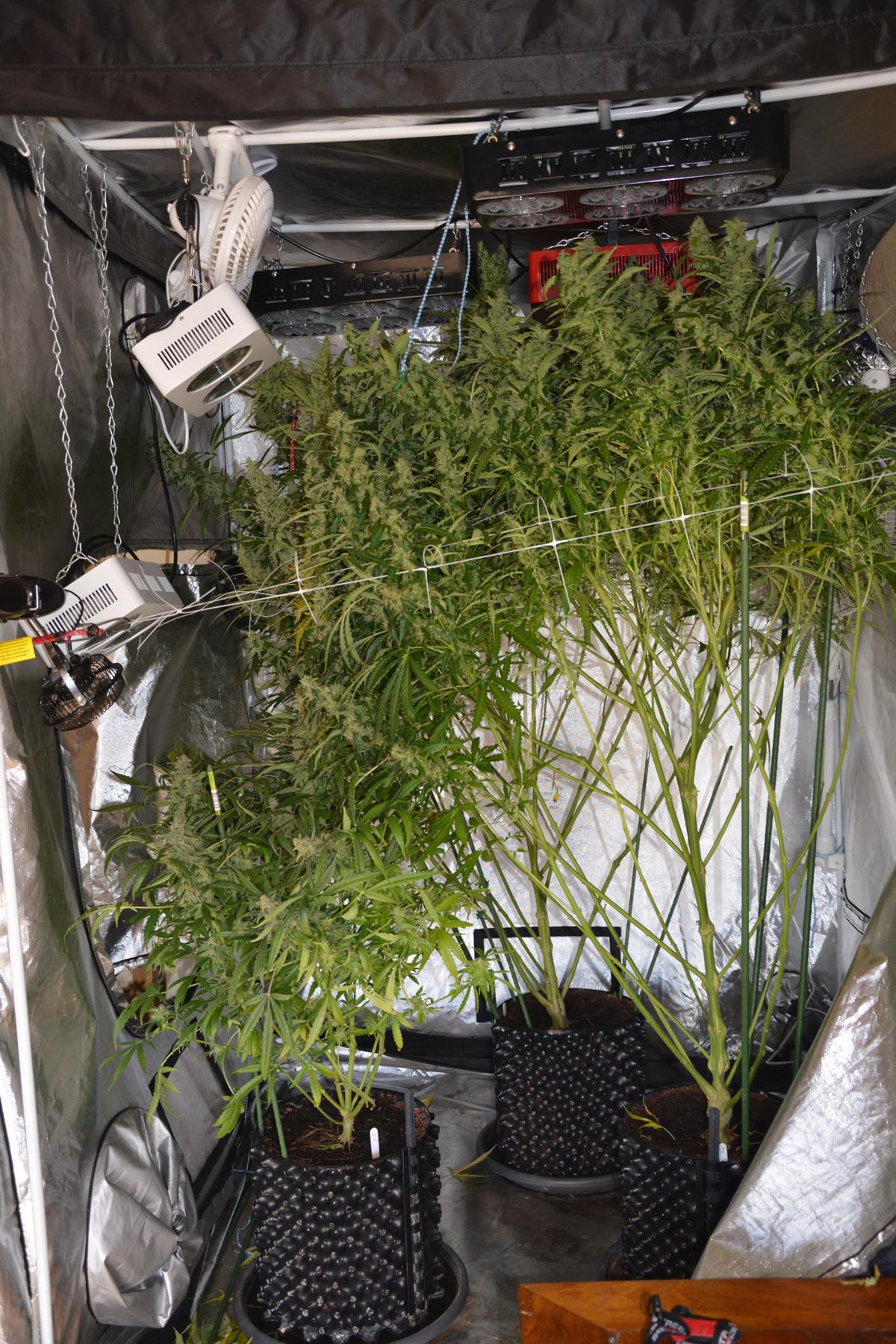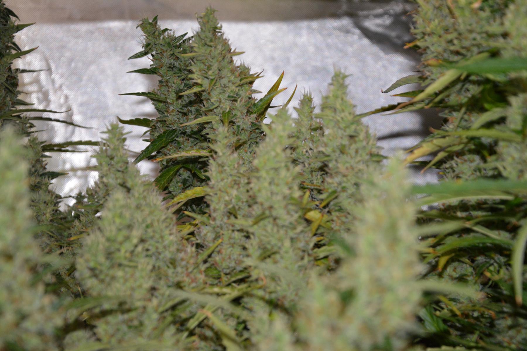 On both, the buds are plentiful, big and covered in trichomes. I'm glad I got that netting on a few weeks back, they are all leaning over from the sheer weight of bud. :grin: