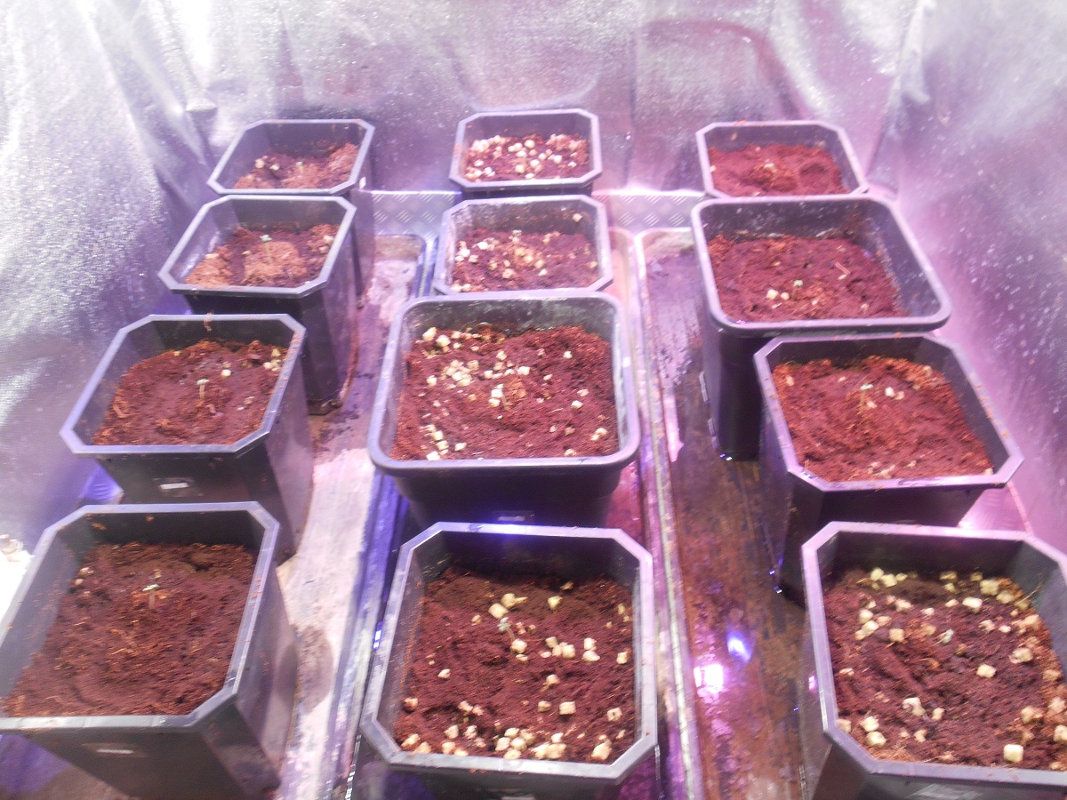 growroom size 1.2 x 1.2m, 10 in 11l pots and 2 in 18l pots.