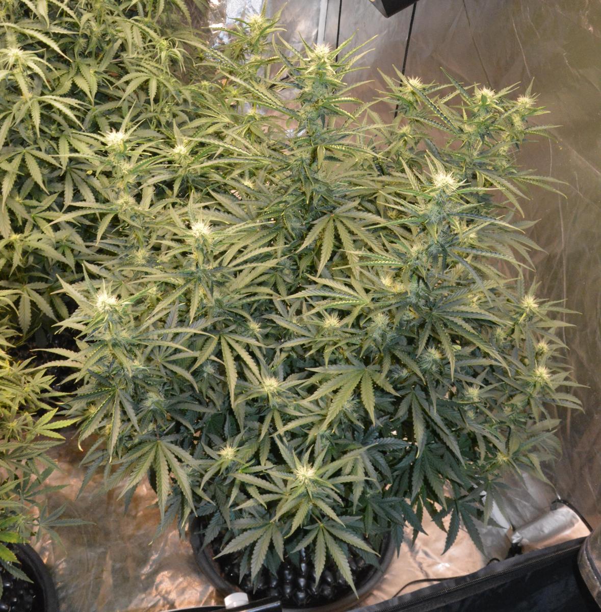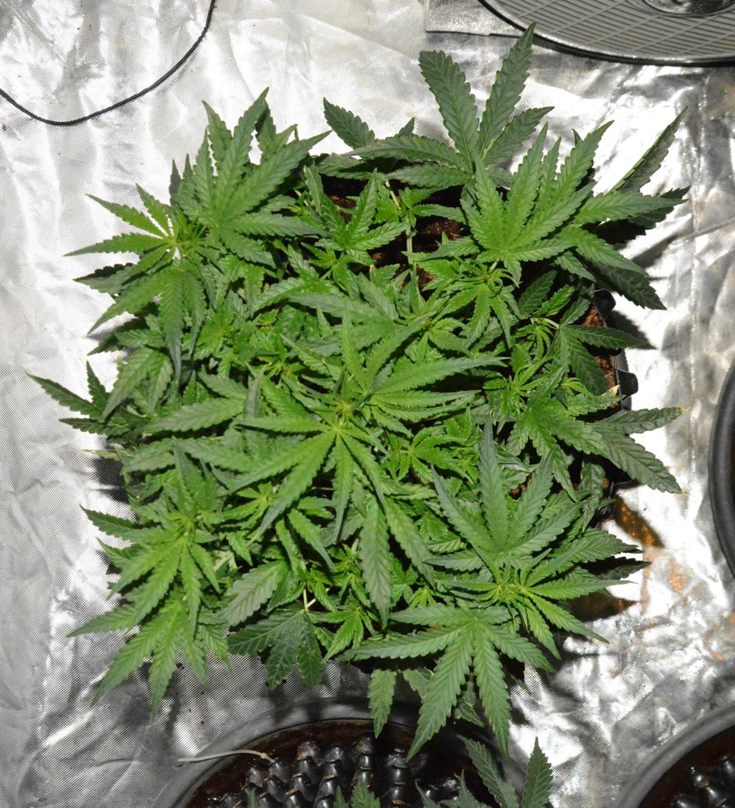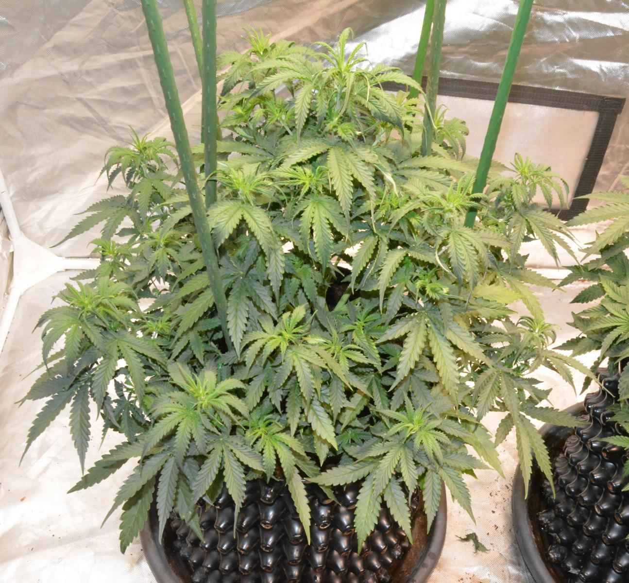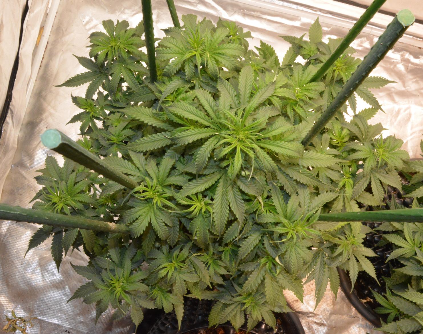 Cindy Jack 2 is 2 weeks younger than the rest, so day 27. I've noticed this before when I have grown an extra plant a couple of weeks after some others.... the young 'un starts flowering earlier. This one is doing the same, so I am trying to keep her in veg as long as possible before she stops growing. Basically I have increased Nitrogen Boost to 0.5ml/L.
