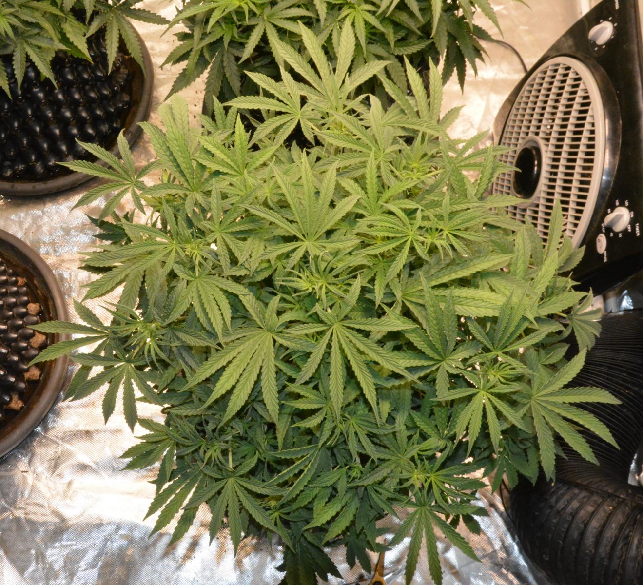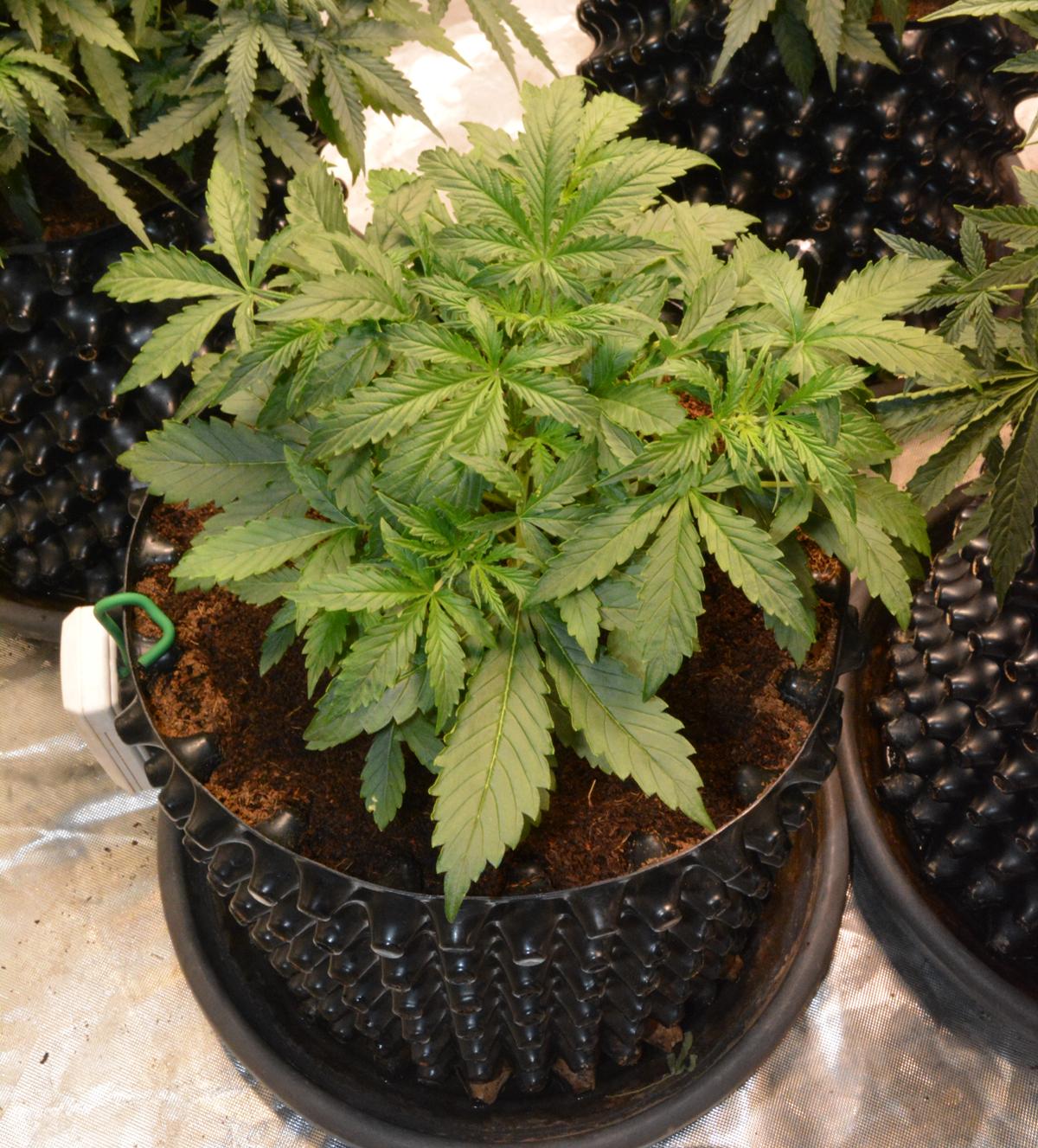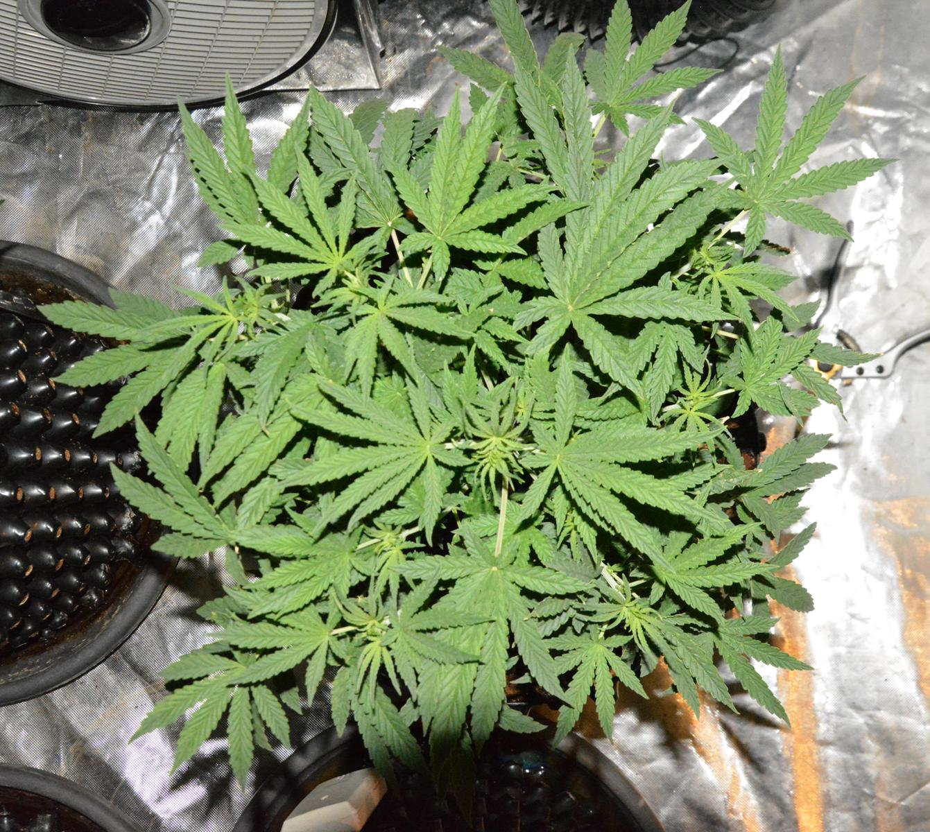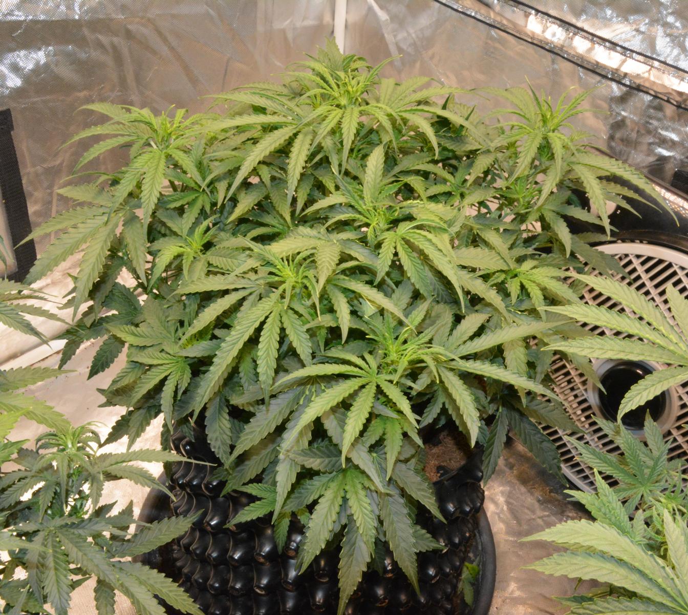 Cindy Jack 2 is 2 weeks younger than the rest, so day 27. I've noticed this before when I have grown an extra plant a couple of weeks after some others.... the young 'un starts flowering earlier. This one is doing the same, so I am trying to keep her in veg as long as possible before she stops growing. Basically I have increased Nitrogen Boost to 0.5ml/L.