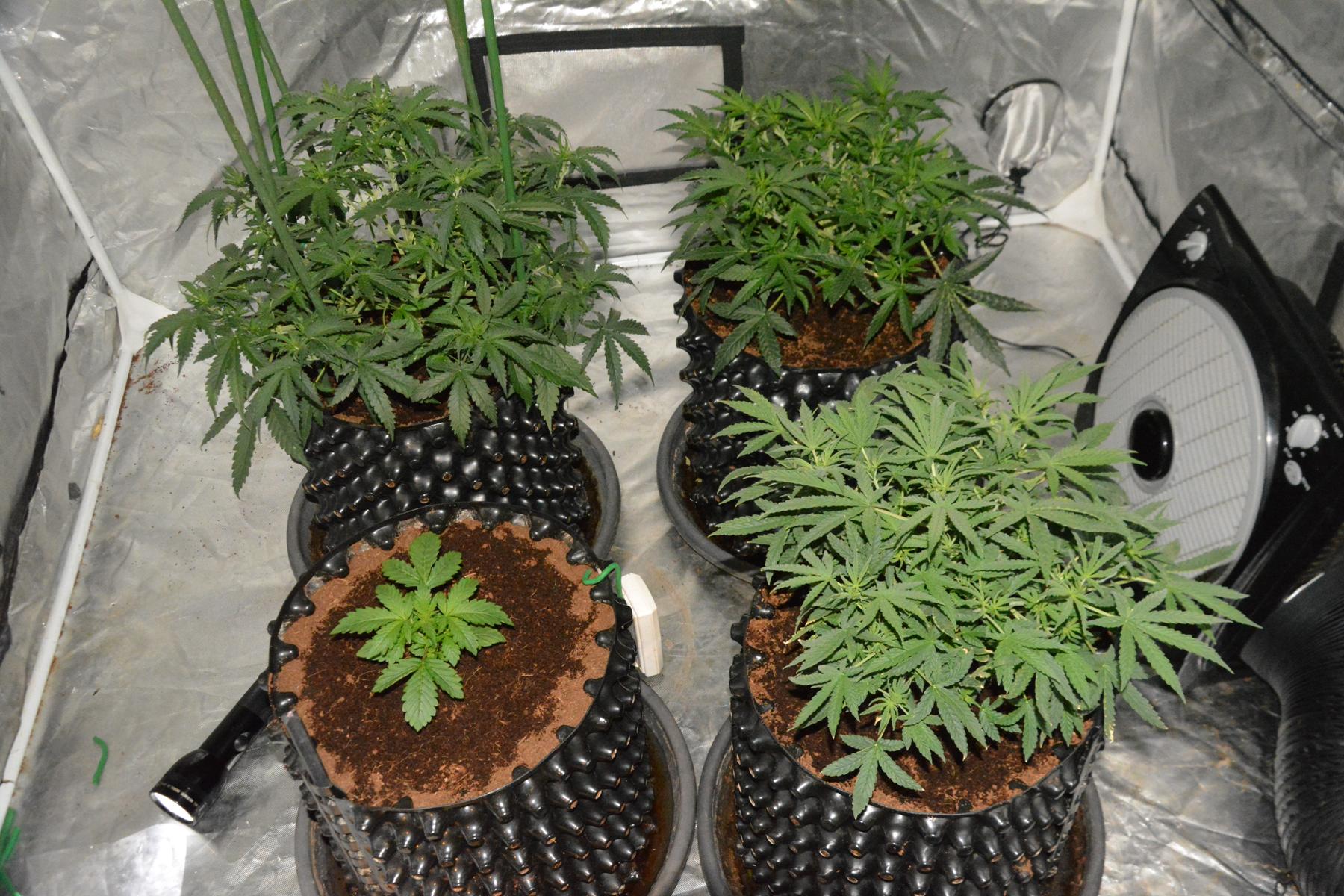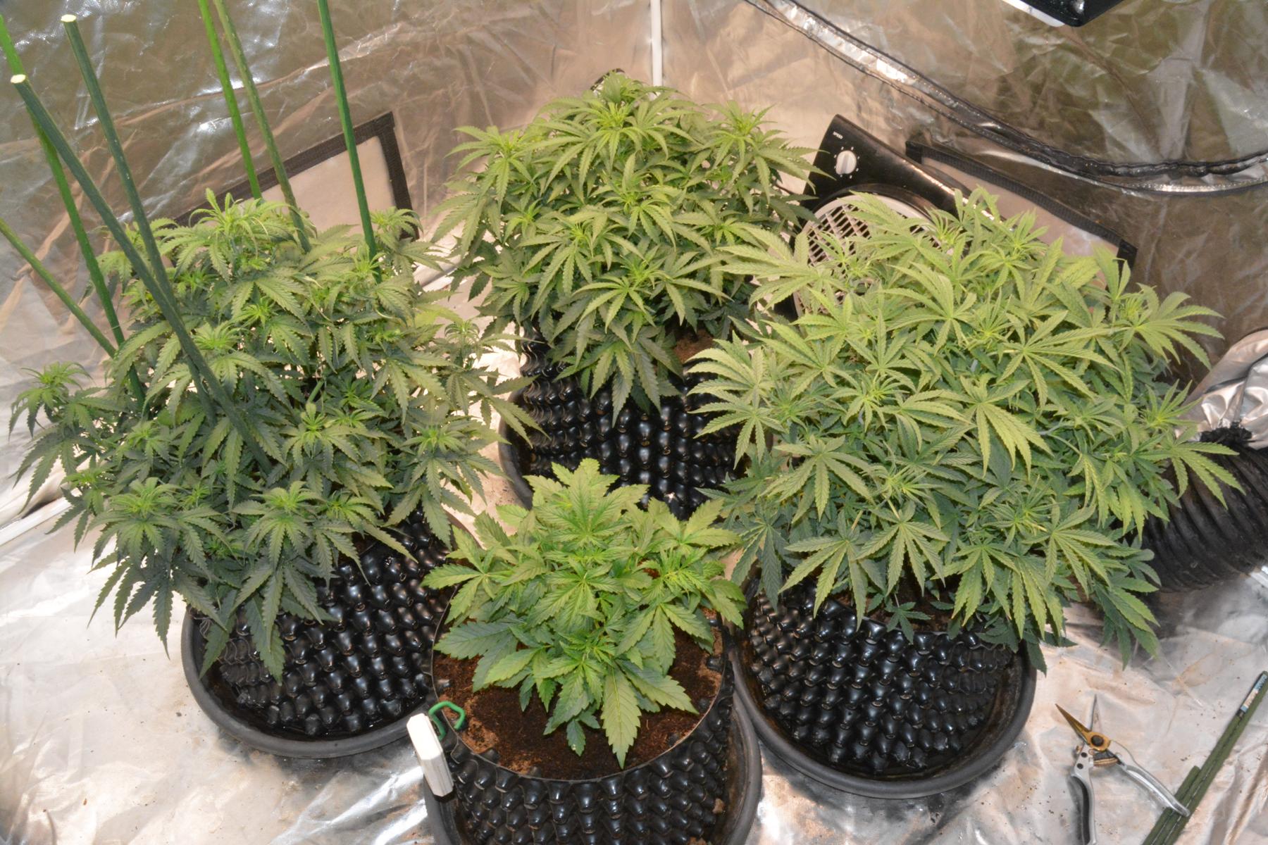 The Glueberries are at the back. The 3 older plants each have a Skyline 400W unit, and the CJ2 is just getting spread from those 3 LEDs. I didn't want to give her direct light until she really needs it to keep my temps down.