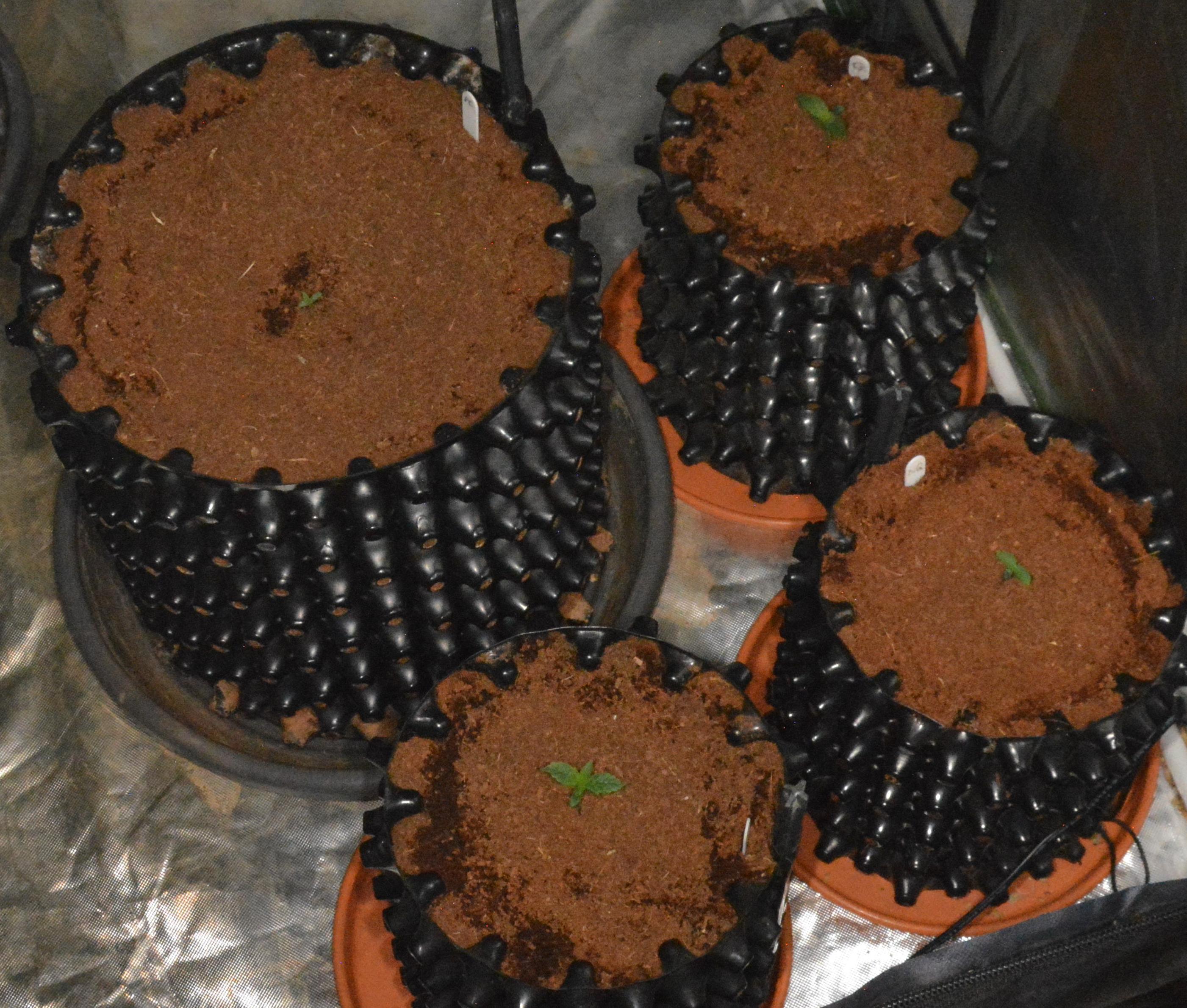 I put the Night Queen and Glueberry seeds directly in 5L airpots, with 100% Coco, soaked in EC 0.7 nutrient mix. The usual 20L airpots were still in use when I sowed these beans.