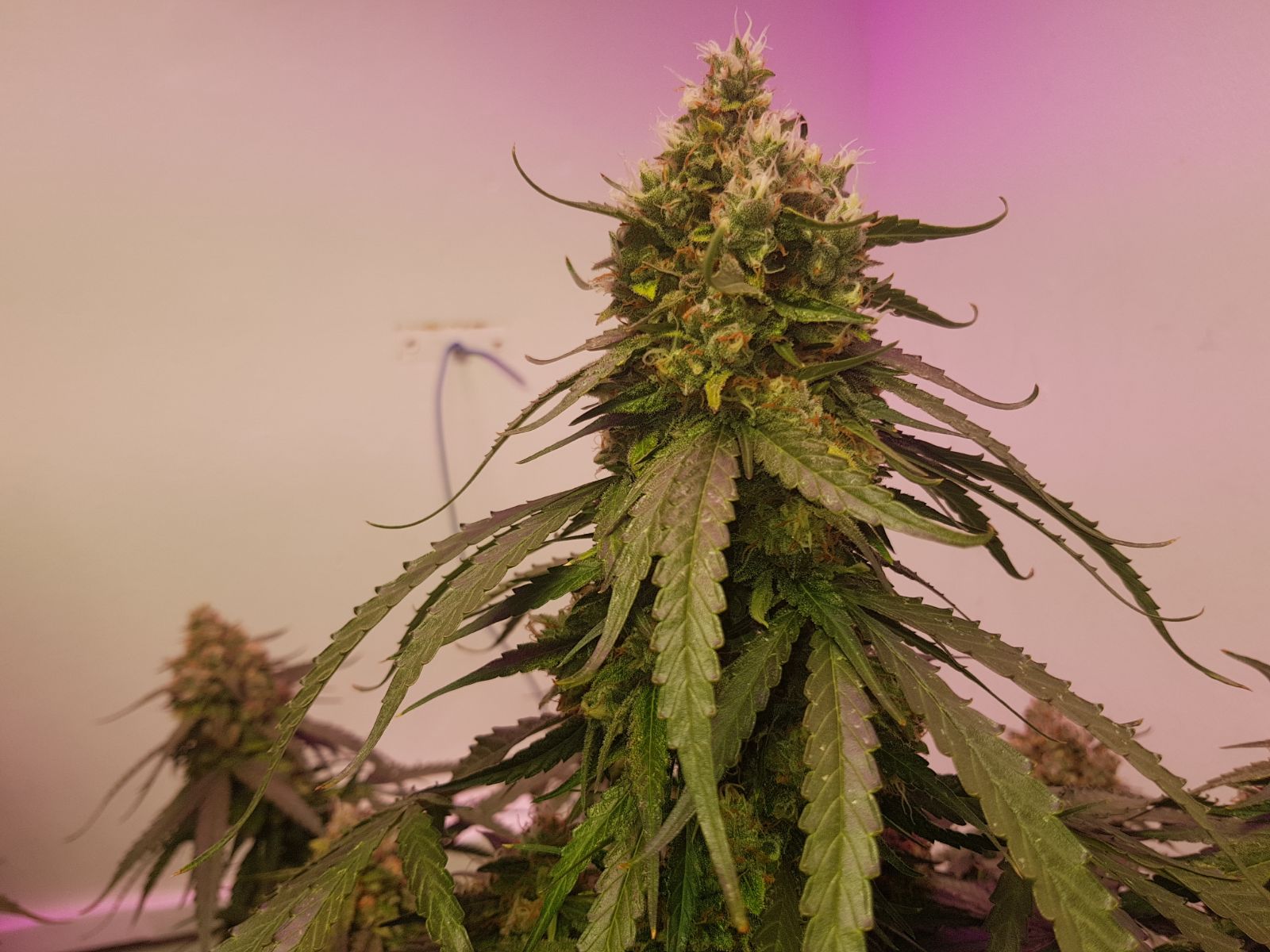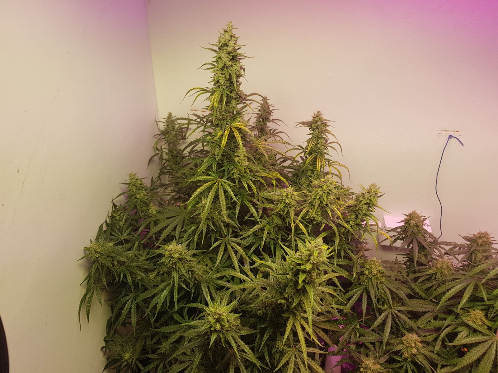 I only had one 20L airpot available, and so I used it for a Pineapple Express seed. I had 3 seeds from winning the COTC on AFN, and grew her once..... the first seed didn't pop, and the second time she was small, giving me just under 3 ounces, but was a very strong smoke that tasted so pineapplely!!! She was small because I had her in with plants that were a bit older, and I have this theory that when the older ones start flowering, it initiates flowering in any nearby younger plants. This results in smaller plants that finish a lot quicker.