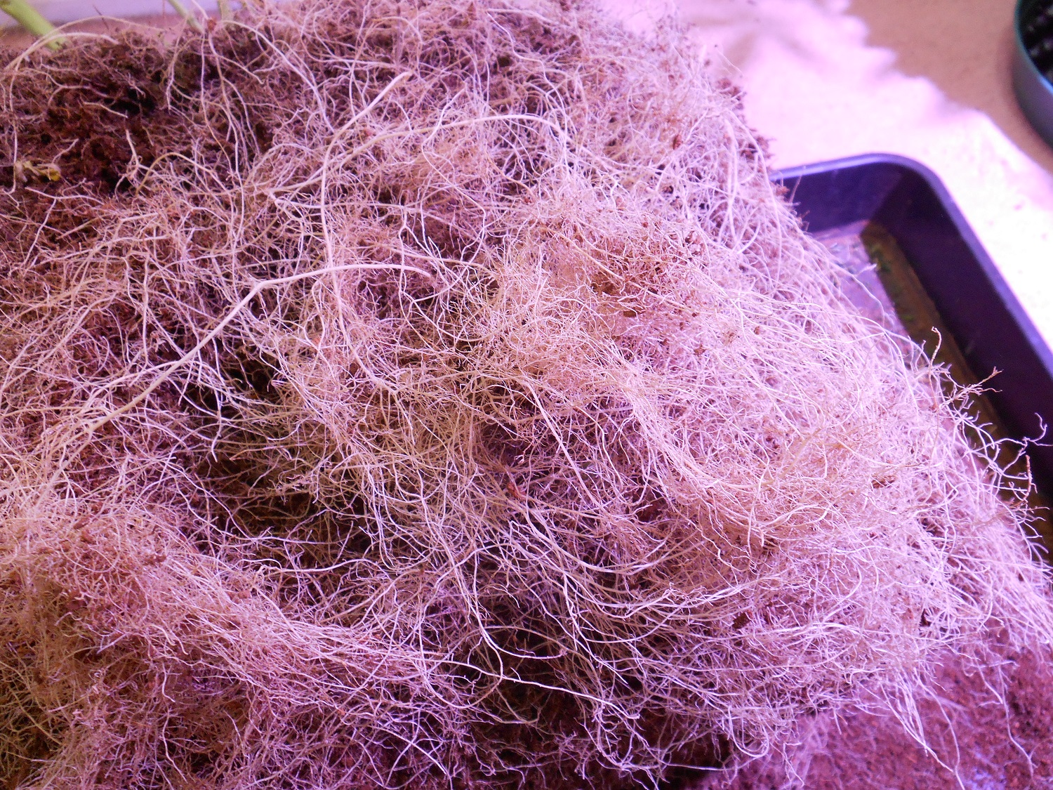 look some roots from air pots. tray is 2x2 feet