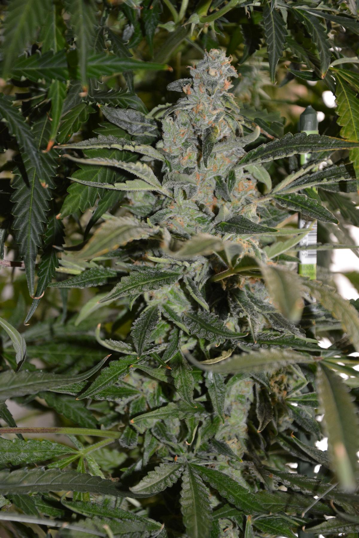 Here's a shot of AU1 on day 68, showing signs of heat stress but some nice colas forming, and some recent supercropping.....