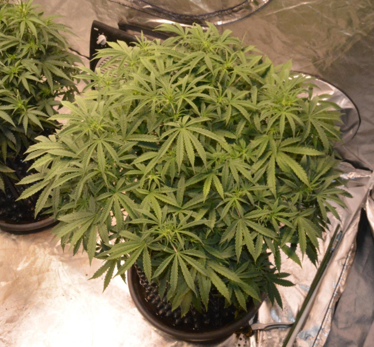 Cindy Jack 2 is 2 weeks younger than the rest, so day 27. I've noticed this before when I have grown an extra plant a couple of weeks after some others.... the young 'un starts flowering earlier. This one is doing the same, so I am trying to keep her in veg as long as possible before she stops growing. Basically I have increased Nitrogen Boost to 0.5ml/L.